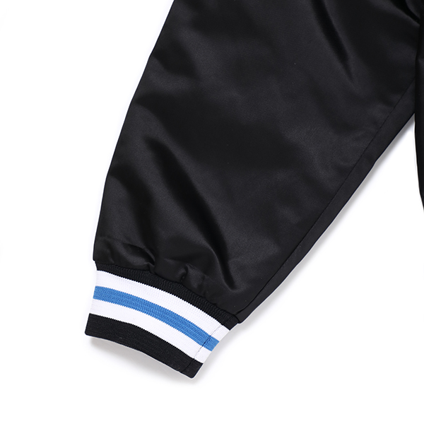 フロントと左袖に刺繍ワッペンが施されたヴァーシティJKT。
