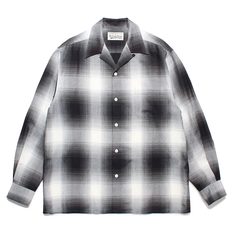 WACKO MARIA/OMBRE CHECK OPEN COLLAR SHIRT(WHITE)[オンブレチェックオープンカラーシャツ-23秋冬]