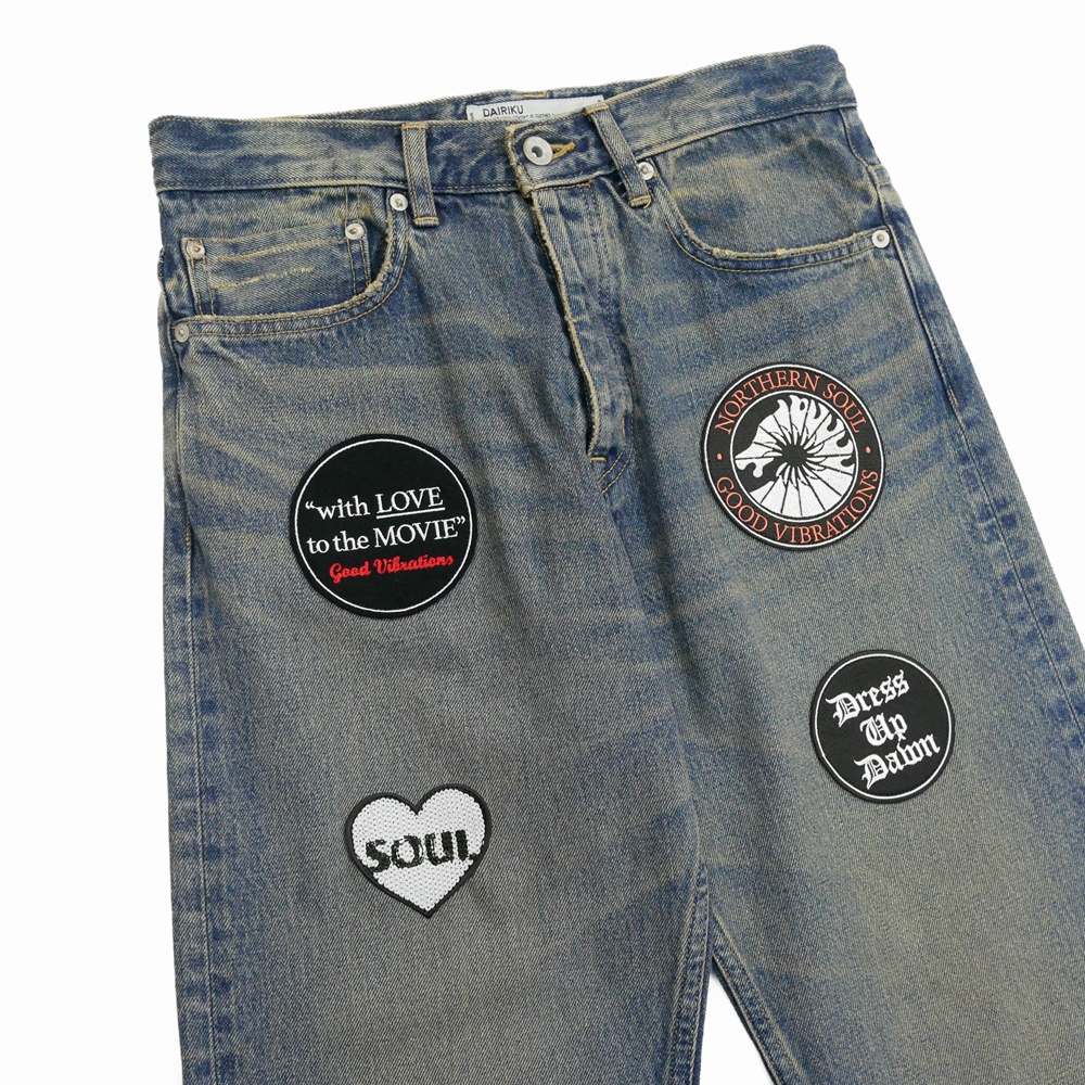 今季を象徴するワッペンを配置したフレアデニムパンツです。