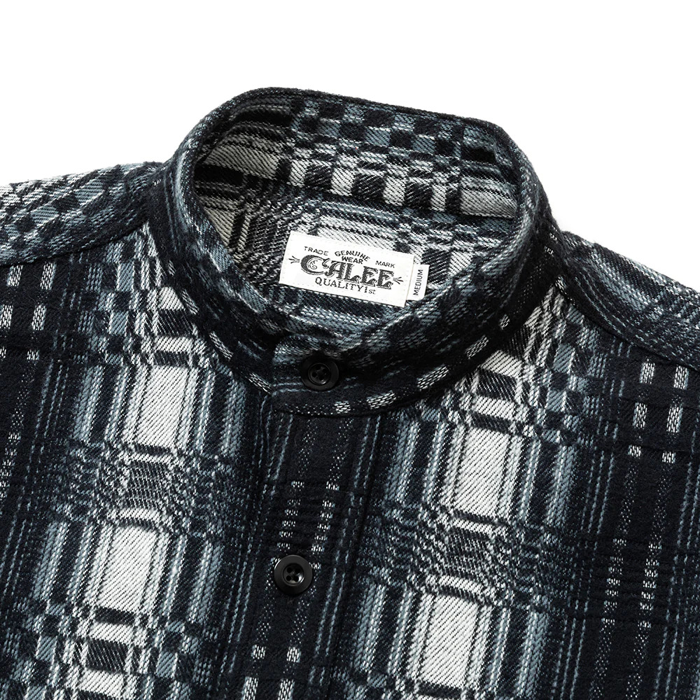 CALEE/O/S DOBBY CHECK BAND COLLAR SH(BLACK/WHITE)[ドビーチェックバンドカラーシャツ-23秋冬]