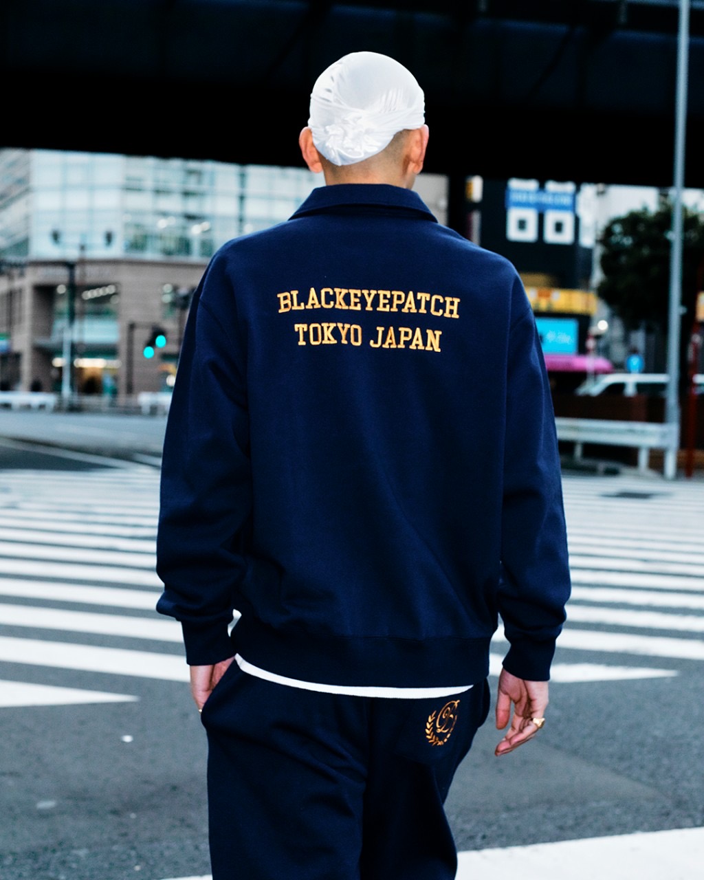 BlackEyePatch/ROYAL B EMBLEM COLLARED SWEAT PULLOVER(NAVY)