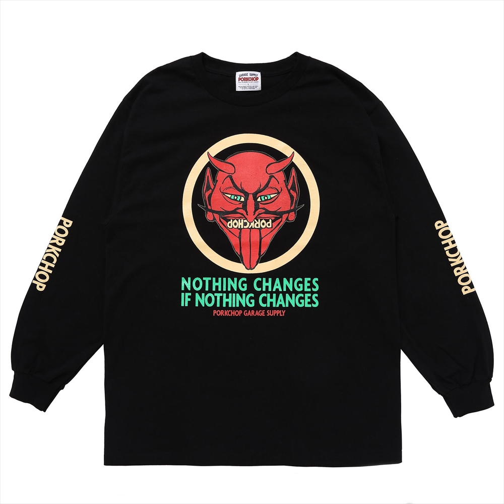 PORKCHOP/NOTHING DEVIL L/S TEE(BLACK)[プリント長袖T-24春夏]