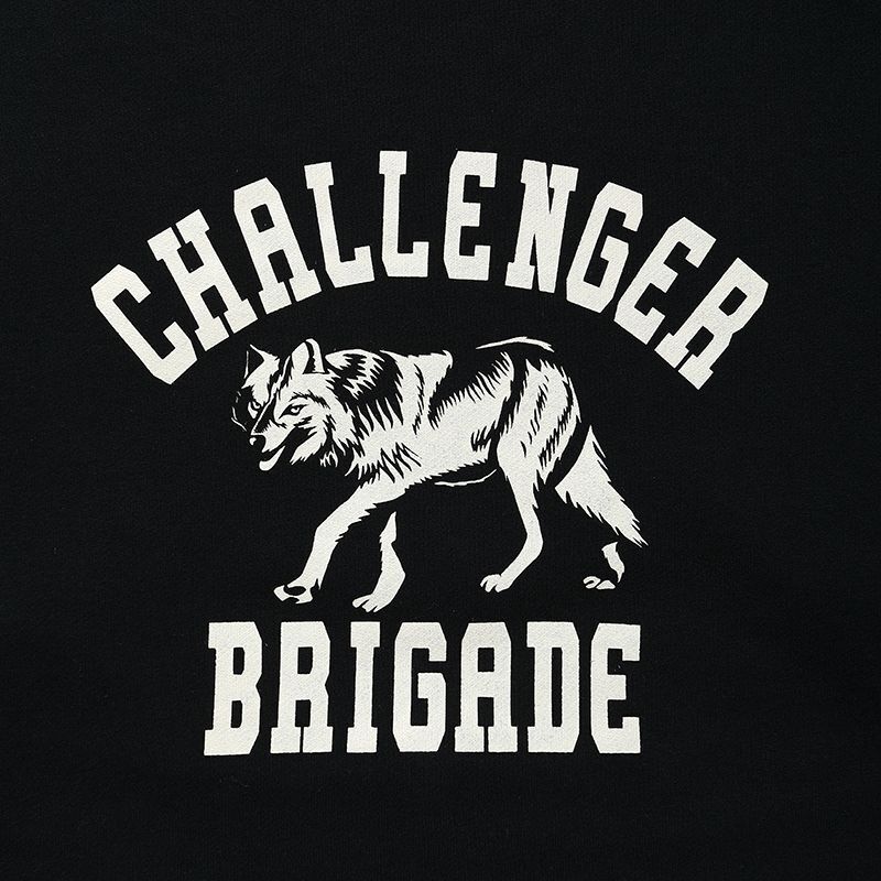 CHALLENGER/WOLF COLLEGE C/N SWEAT(BLACK)[クルーネックスウェット-24秋冬]
