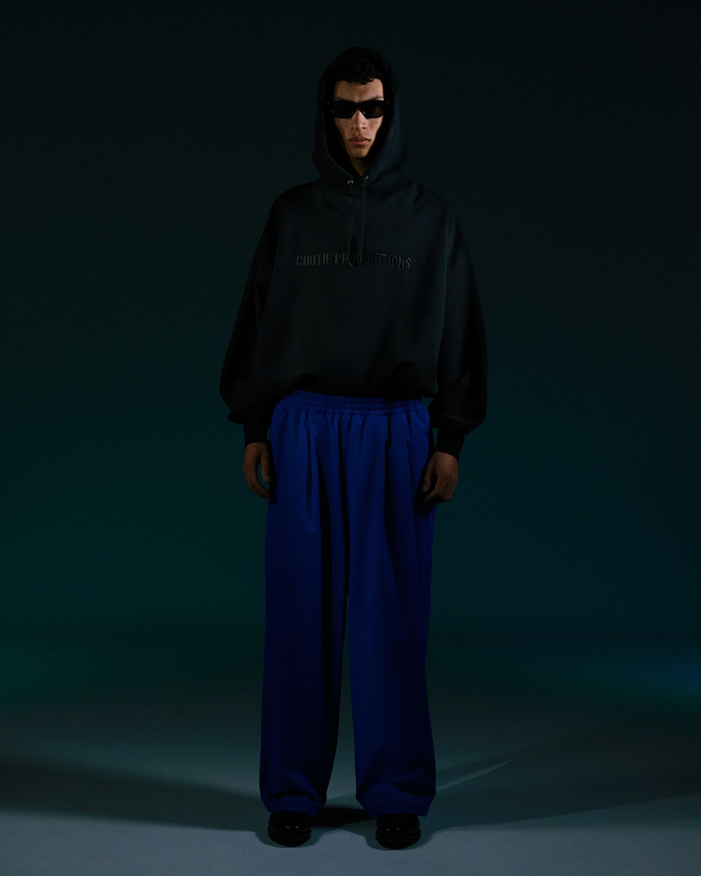ドレープ性に優れたポリエステルツイルを使用したPolyester Twill 2 Tuck Track Pants。