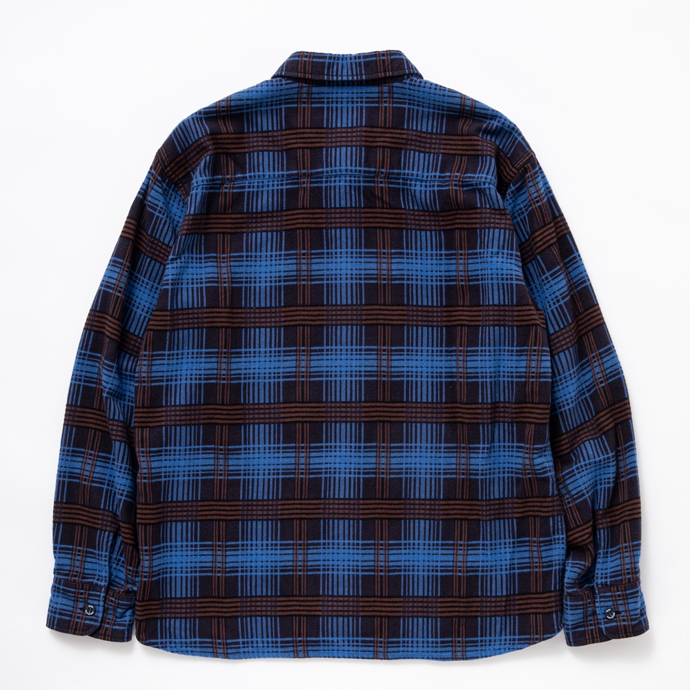 オリジナルで作成したチェック柄テキスタイルのコットン/レーヨンの混紡フランネル素材を使用したレギュラーカラーシャツ。