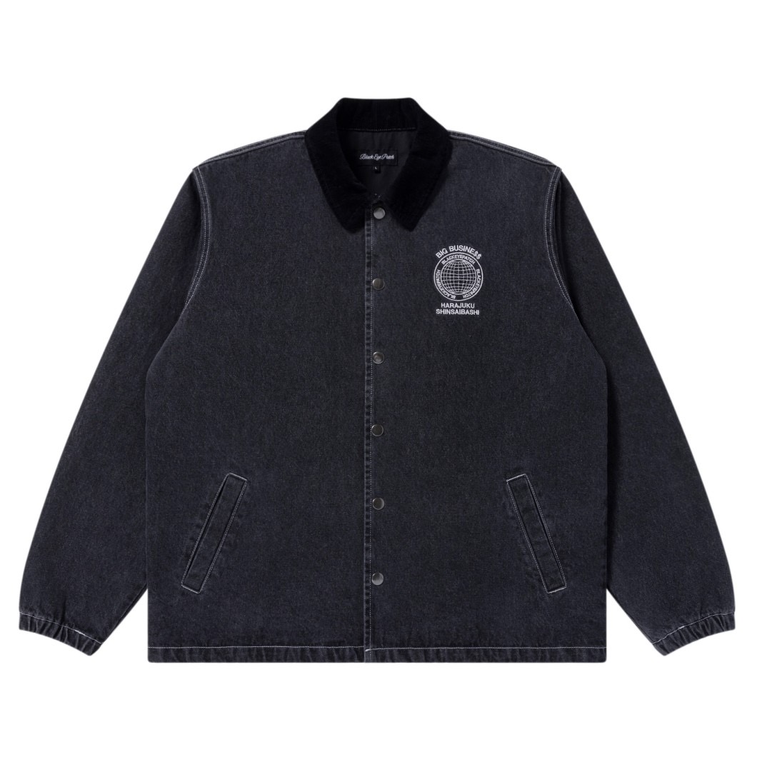 BEP のステートメントを表す "BIG BUSINESS" グラフィックを両面に刺繍で施したデニム地のコーチジャケット。