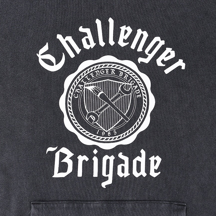 しっかりとした肉感のスウェット生地を使用し、ウォッシュ加工が施されたCHALLENGERオリジナルボディーのCOLLEGE HOODIE。