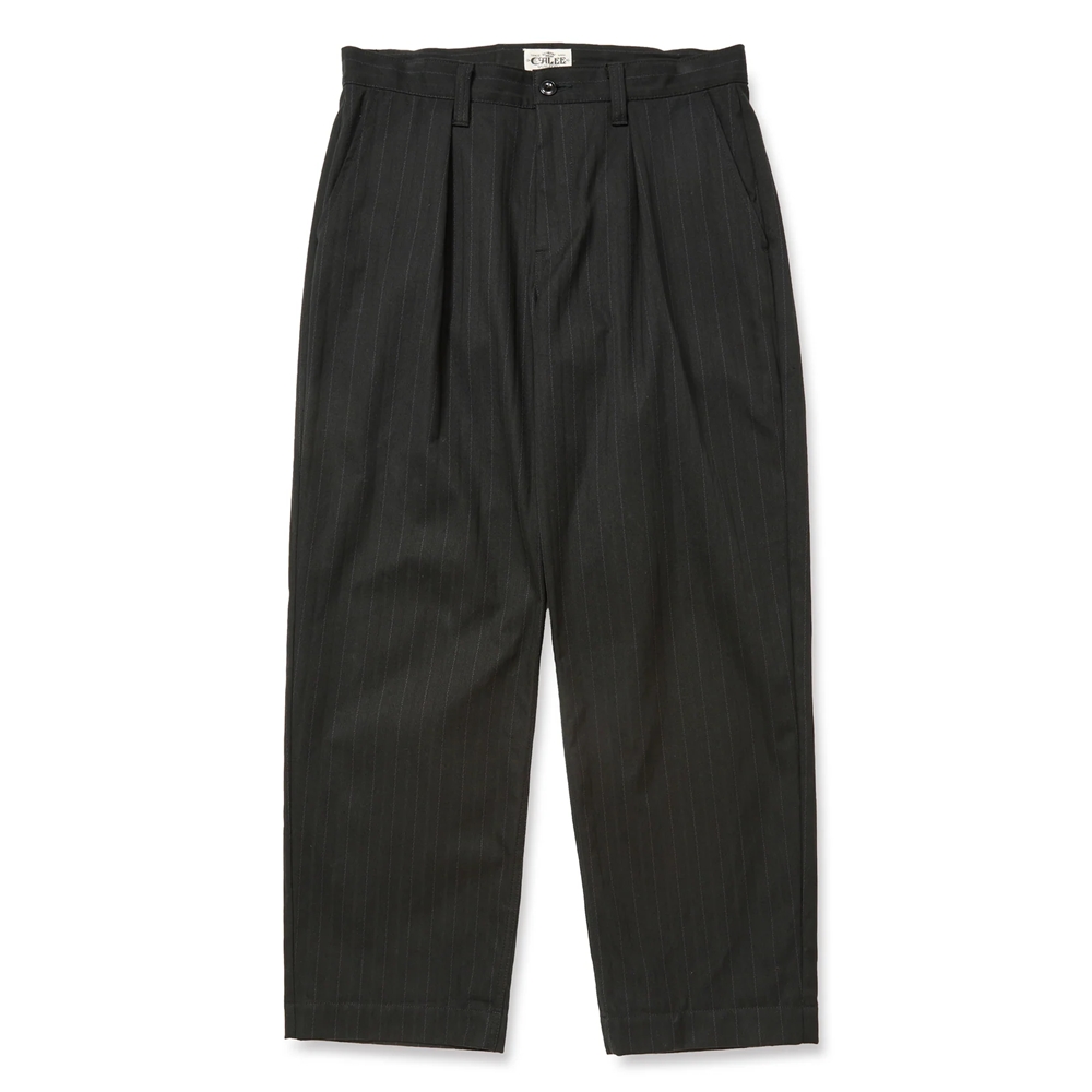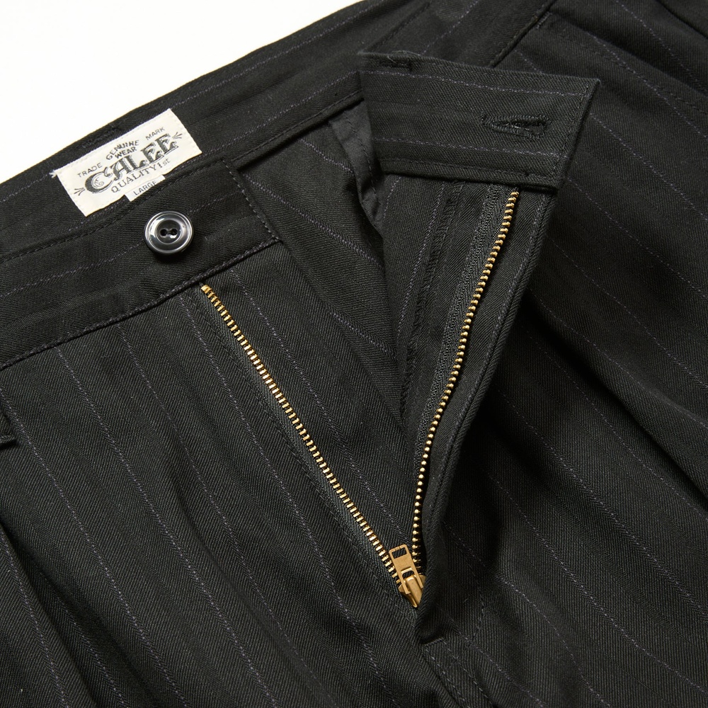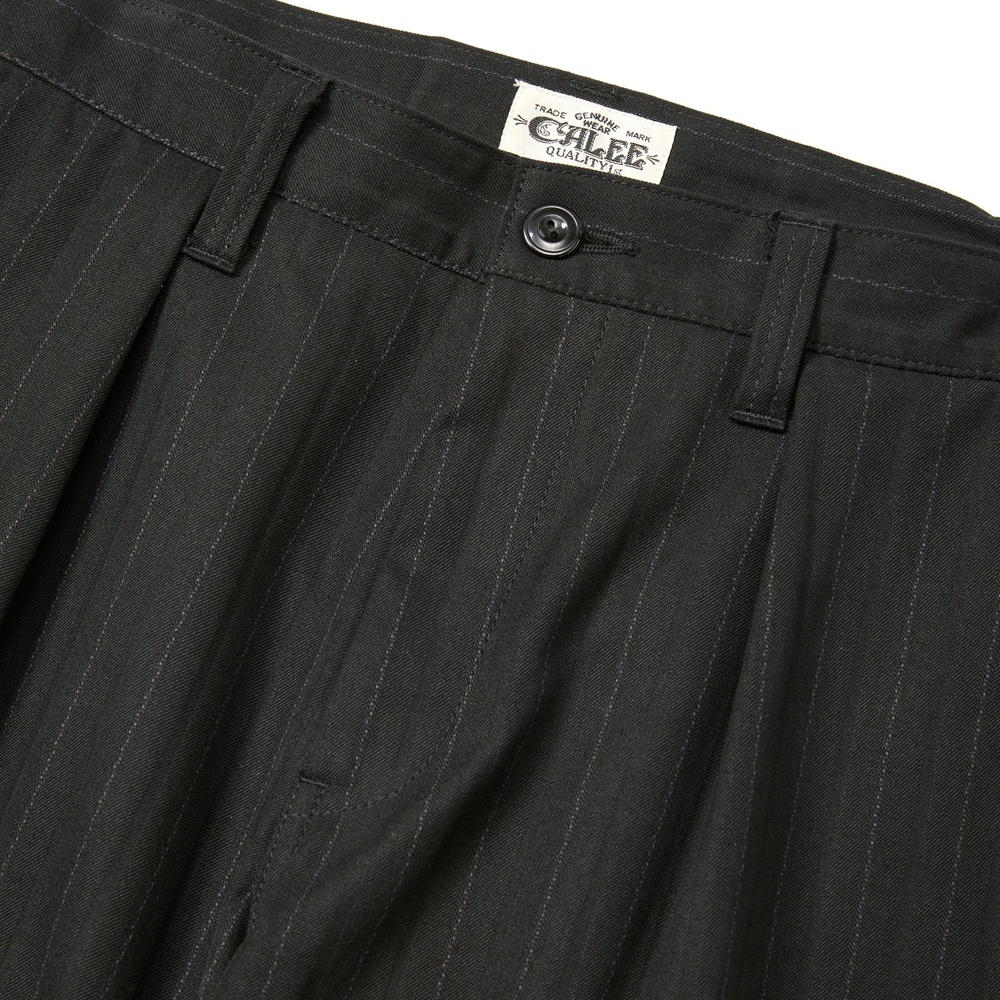 CALEE/PINSTRIPE TUCK WIDE SLACKS(BLACK)[ピストライプタックワイドスラックス-25秋冬]