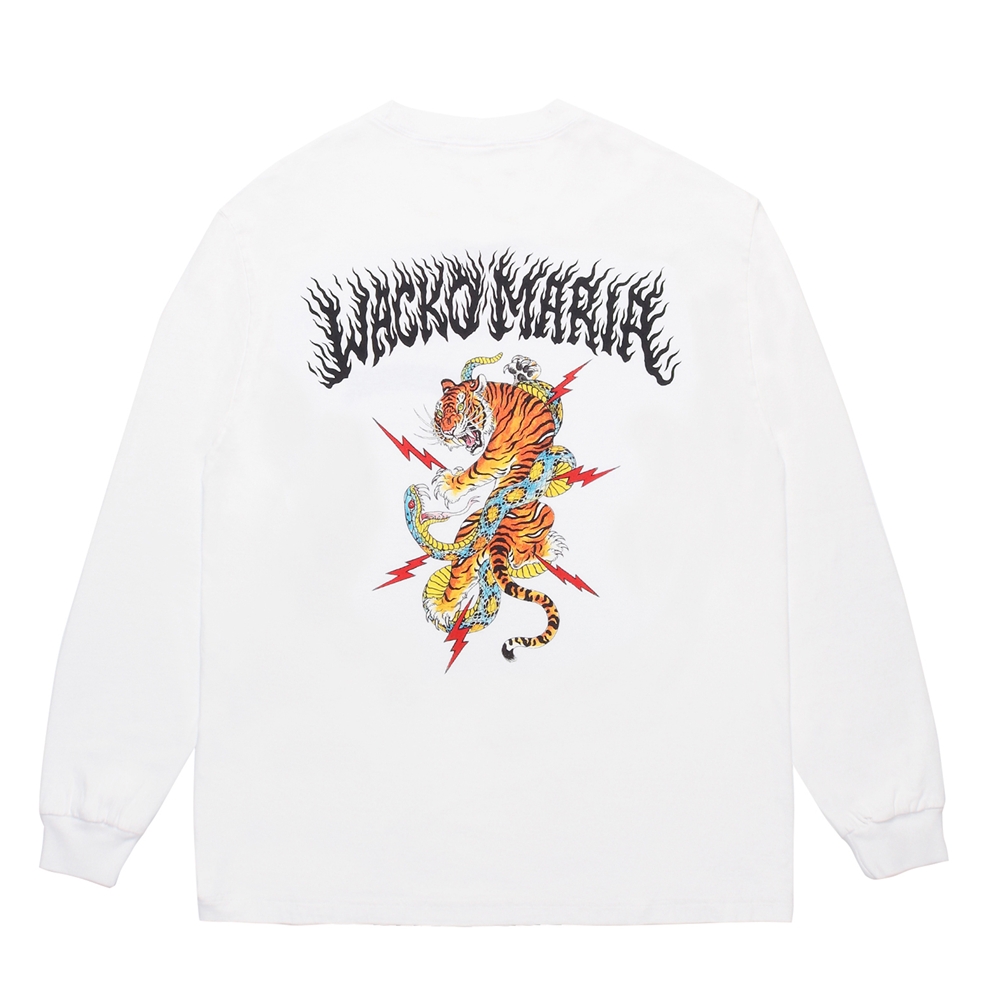 WACKO MARIA/TIM LEHI / WASHED HEAVY WEIGHT LONG SLEEVE T-SHIRT(WHITE)[プリント長袖T-25秋冬]