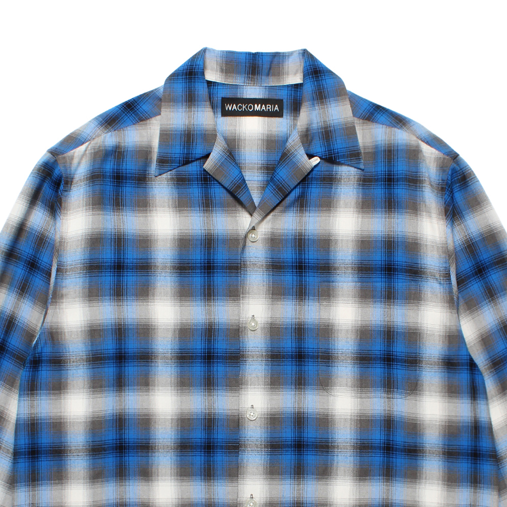 WACKO MARIA/OMBRE CHECK OPEN COLLAR SHIRT(BLUE)[オンブレチェックオープンカラーシャツ-25秋冬]