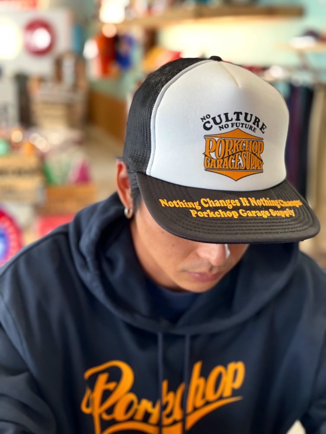 PORKCHOP/WAVE LOGO MESH CAP(WHITE/BLACK)[ウェーブロゴメッシュキャップ-25秋冬]