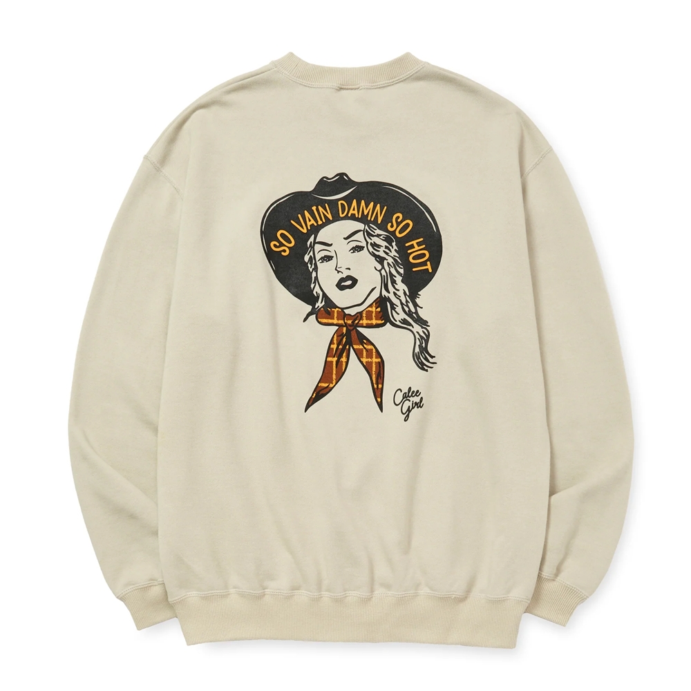 CALEE/SYNDICATE RETRO WESTERN GIRL CREW NECK SW(Lt. BEIGE)[クルーネックスウェット-25秋冬]