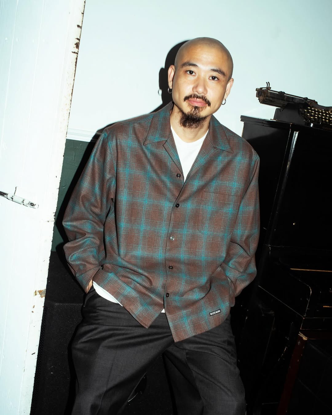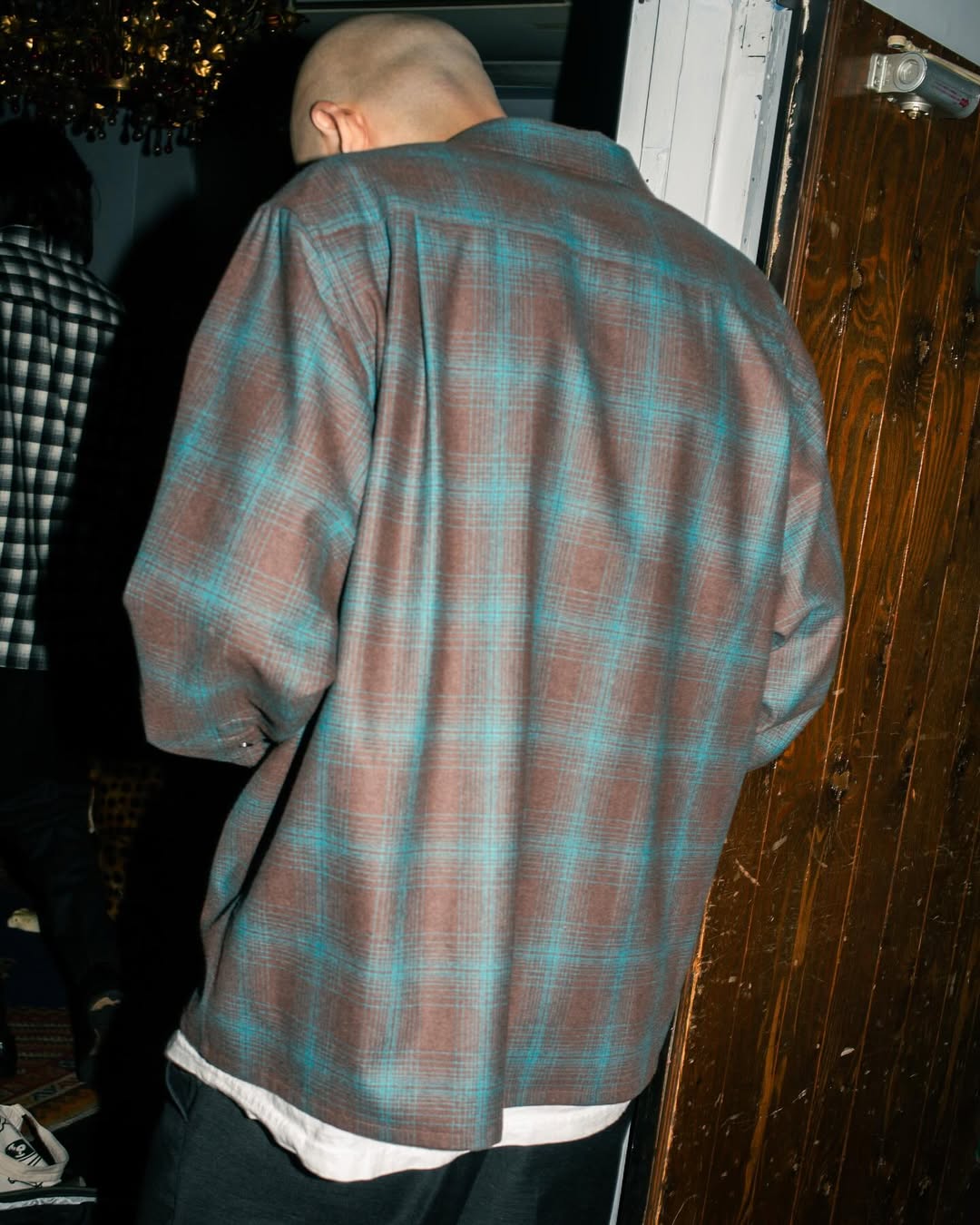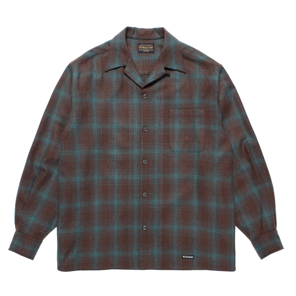 WACKO MARIA/PENDLETON / WOOL OMBRE CHECK OPEN COLLAR SHIRT(BROWN/BLUE)[ウールオンブレチェックオープンカラーシャツ-25秋冬]