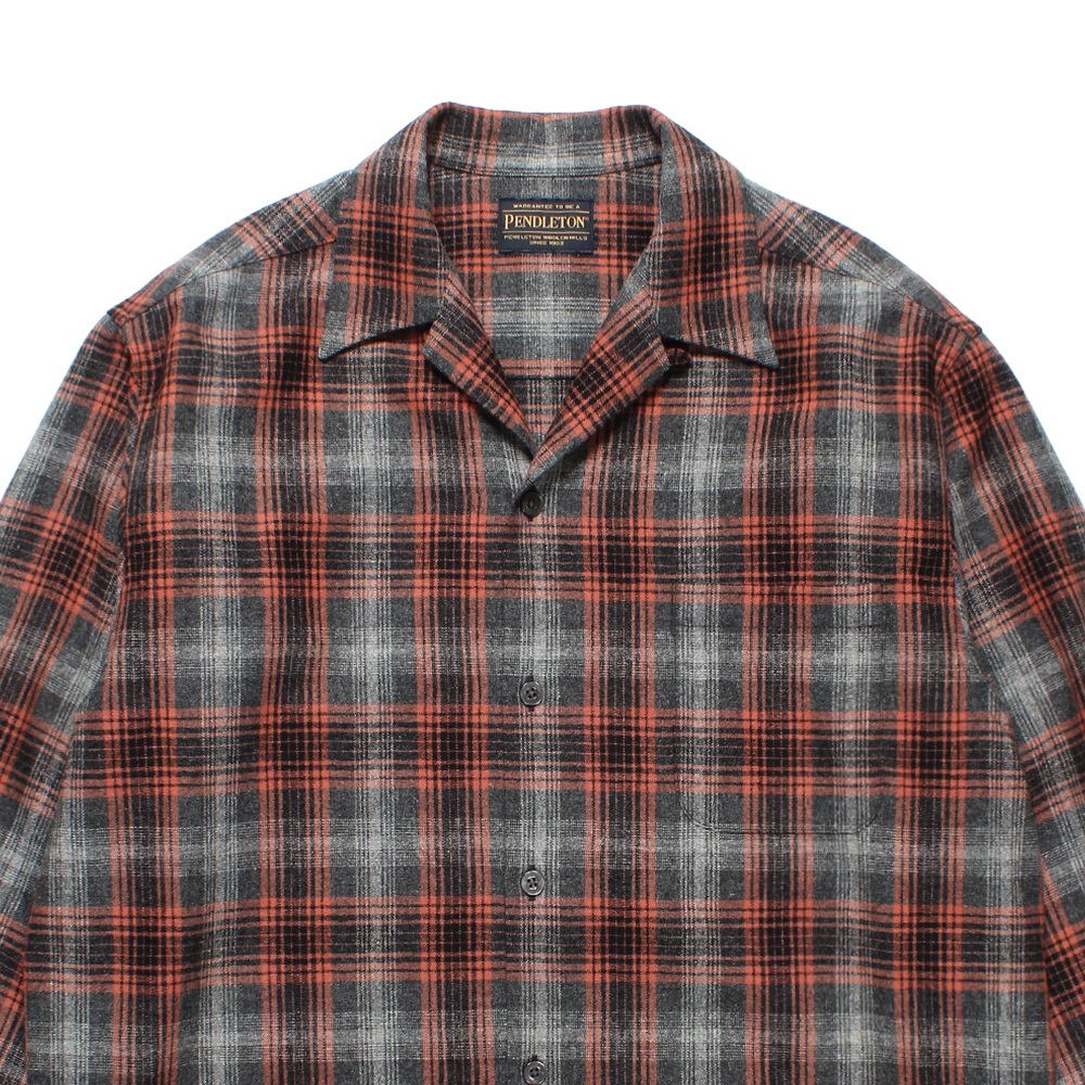 WACKO MARIA/PENDLETON / WOOL OMBRE CHECK OPEN COLLAR SHIRT(GRAY/ORANGE)[ウールオンブレチェックオープンカラーシャツ-25秋冬]