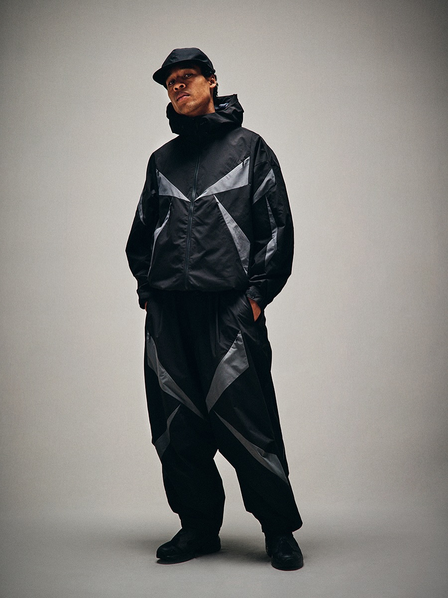 同素材のTRIANGLE BALLOON PANTSとのセットアップスタイルも可能。