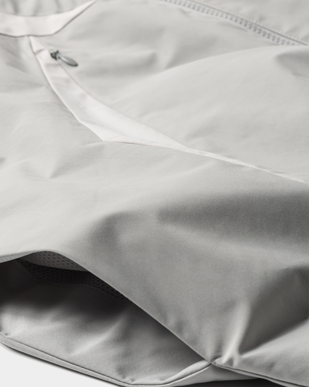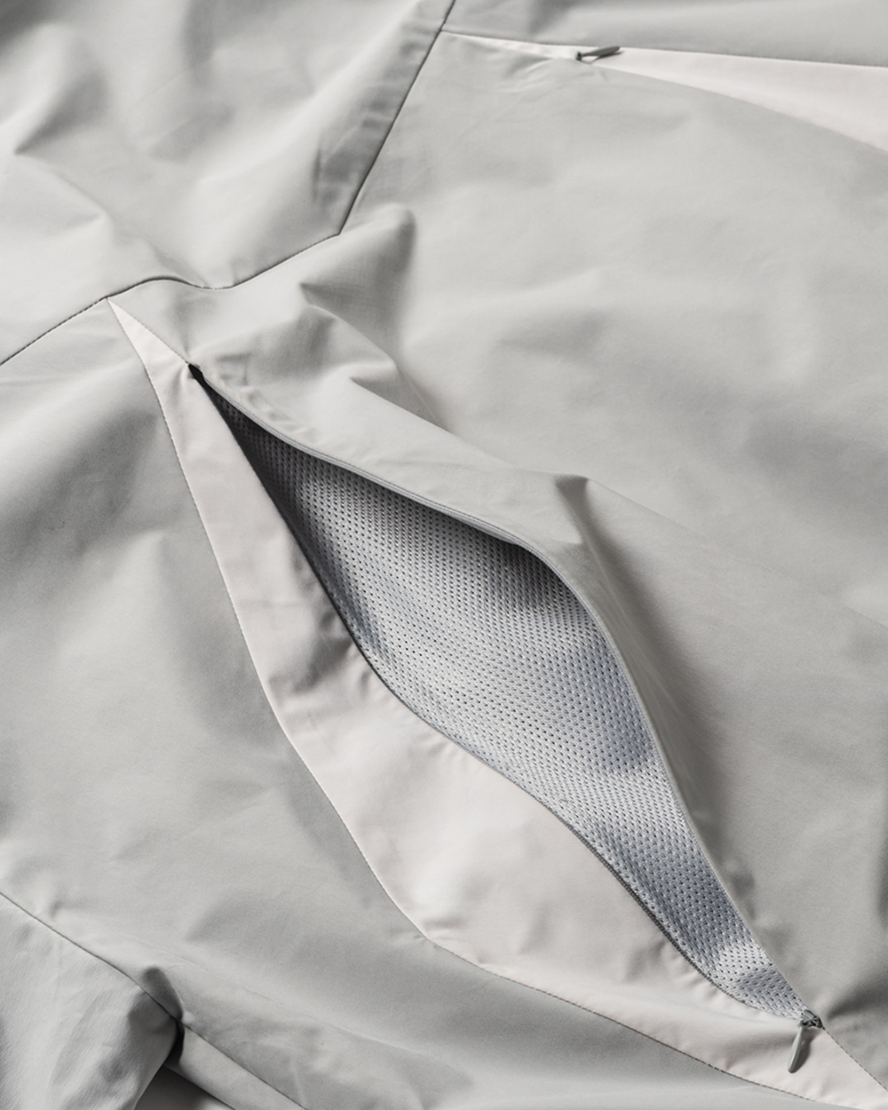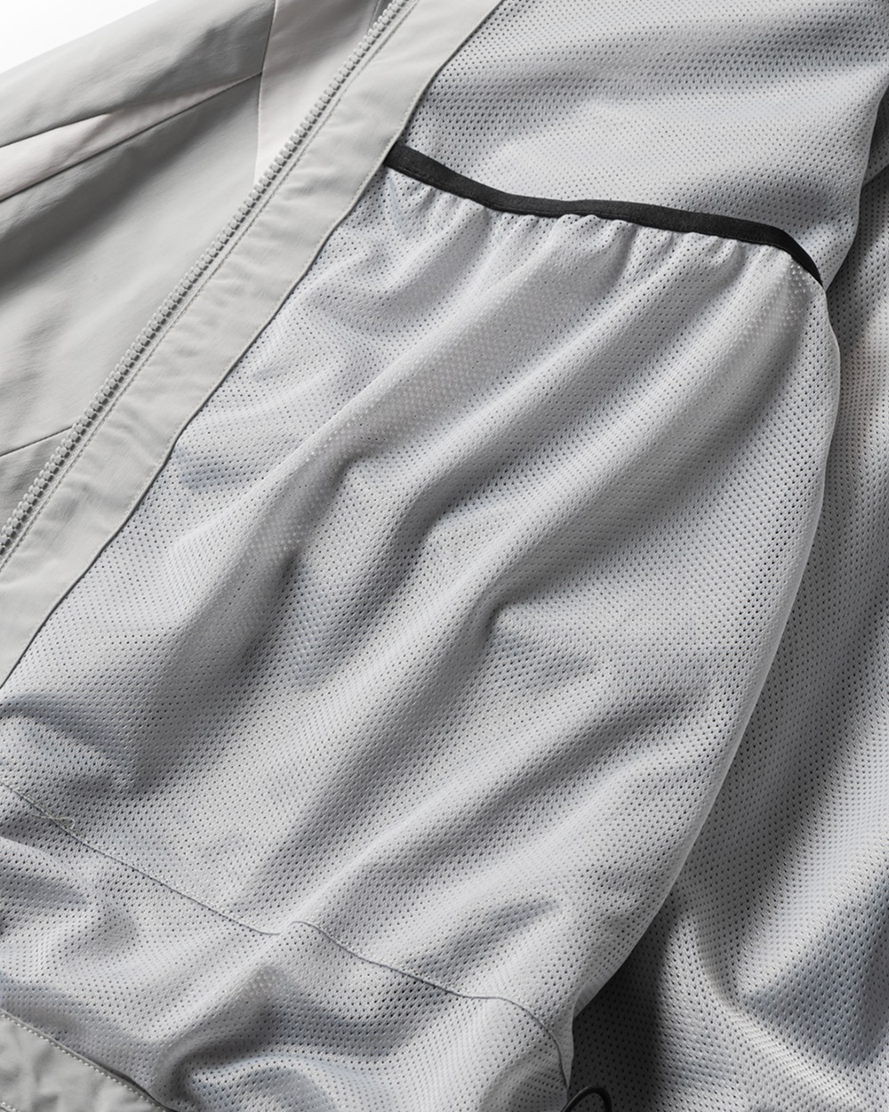 高密度で柔らかく、マット感のある超微起毛ポリエステルウェザー生地を表地に採用し、裏地はメッシュ素材でさらりとした着心地。