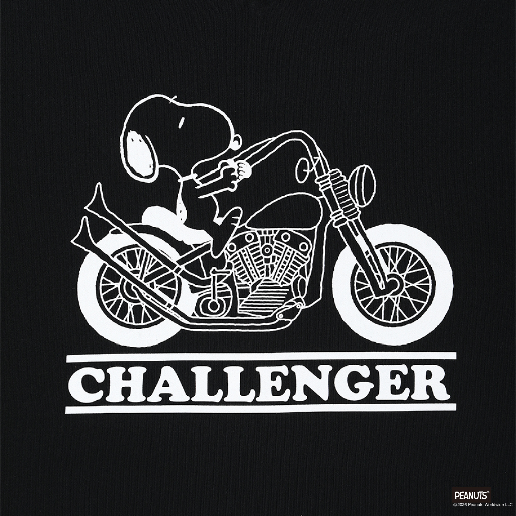 CHALLENGER/SNOOPY C/N SWEAT(BLACK)[スヌーピークルーネックスウェット-26春夏]
