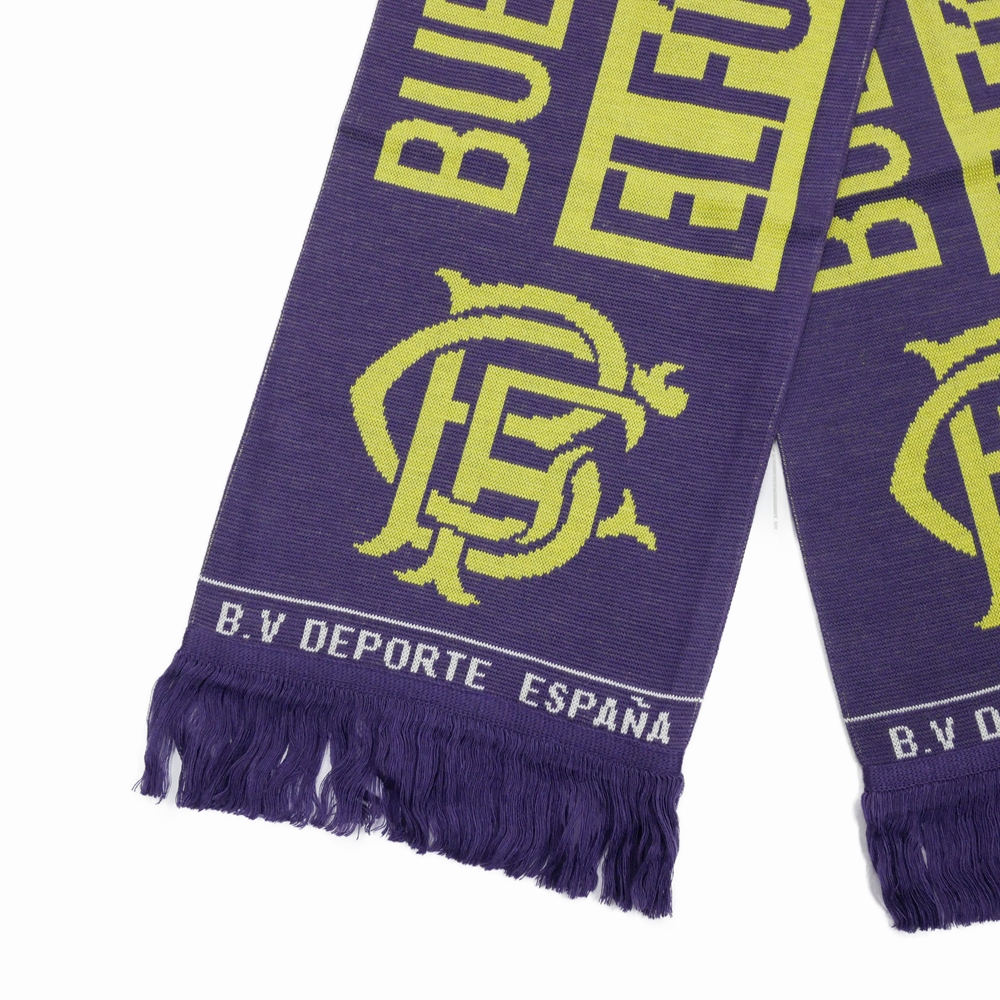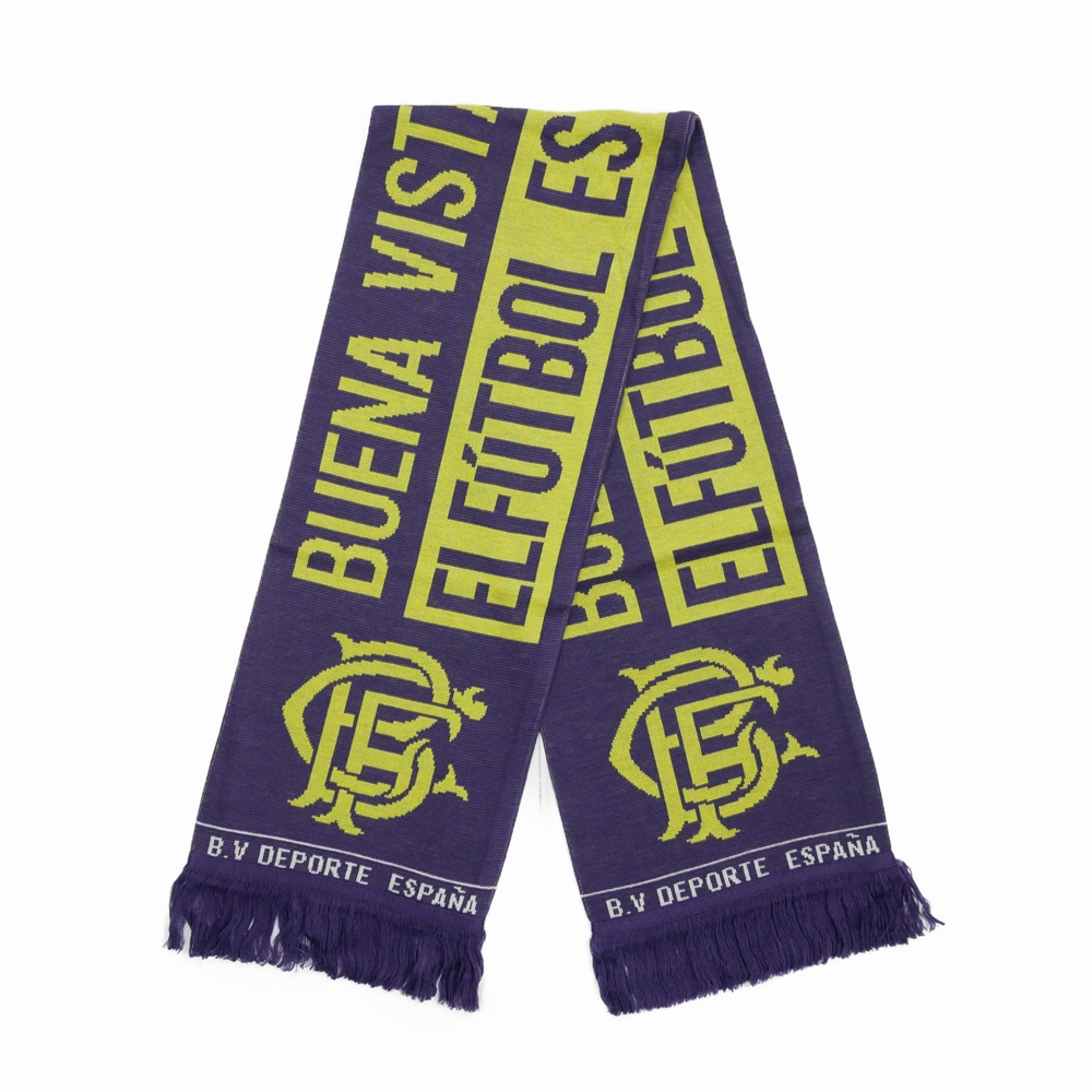 BUENA VISTA football club のロゴと応援に込めたメッセージをジャガード編みで表現したフットボールマフラー。
