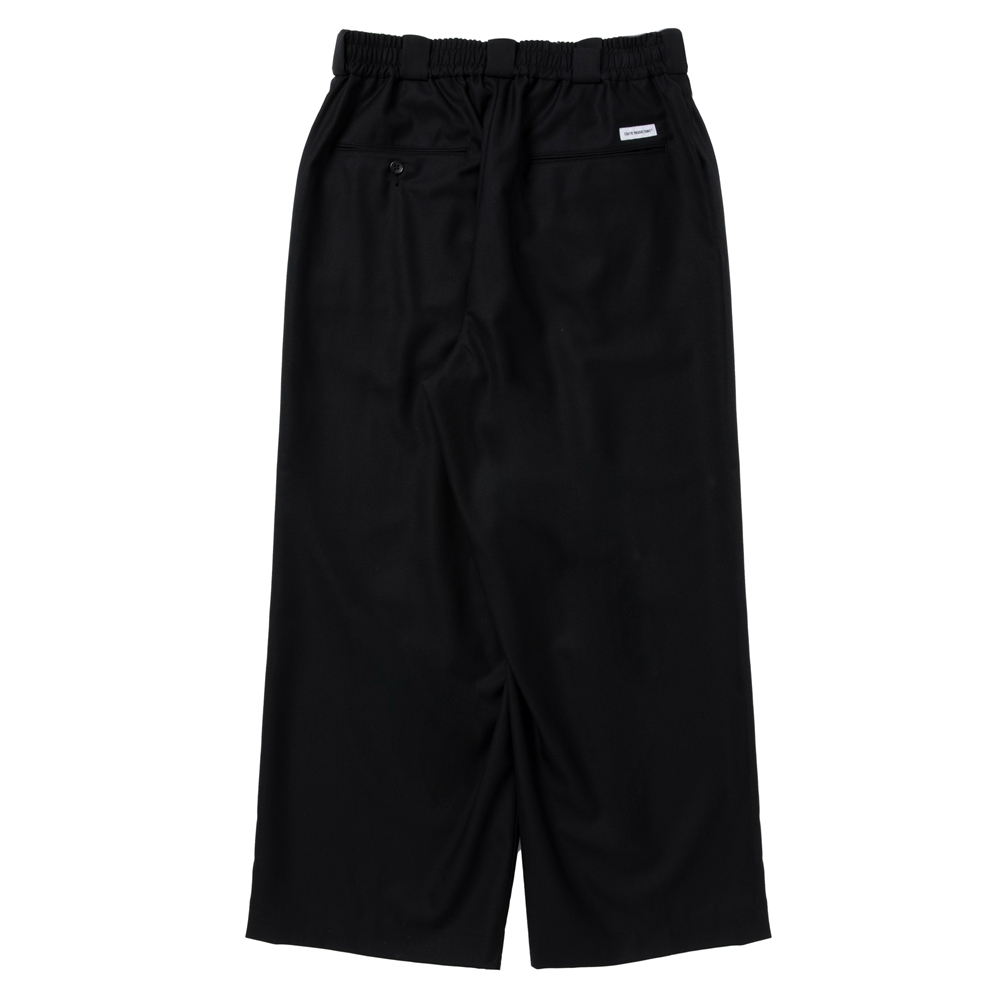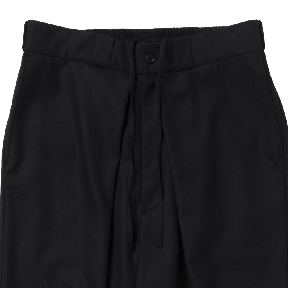 上質な光沢を持つ、Super120S ウールの機能素材 TECHWOOL を使用したTECHWOOL Intuck Wide Easy Trousers。