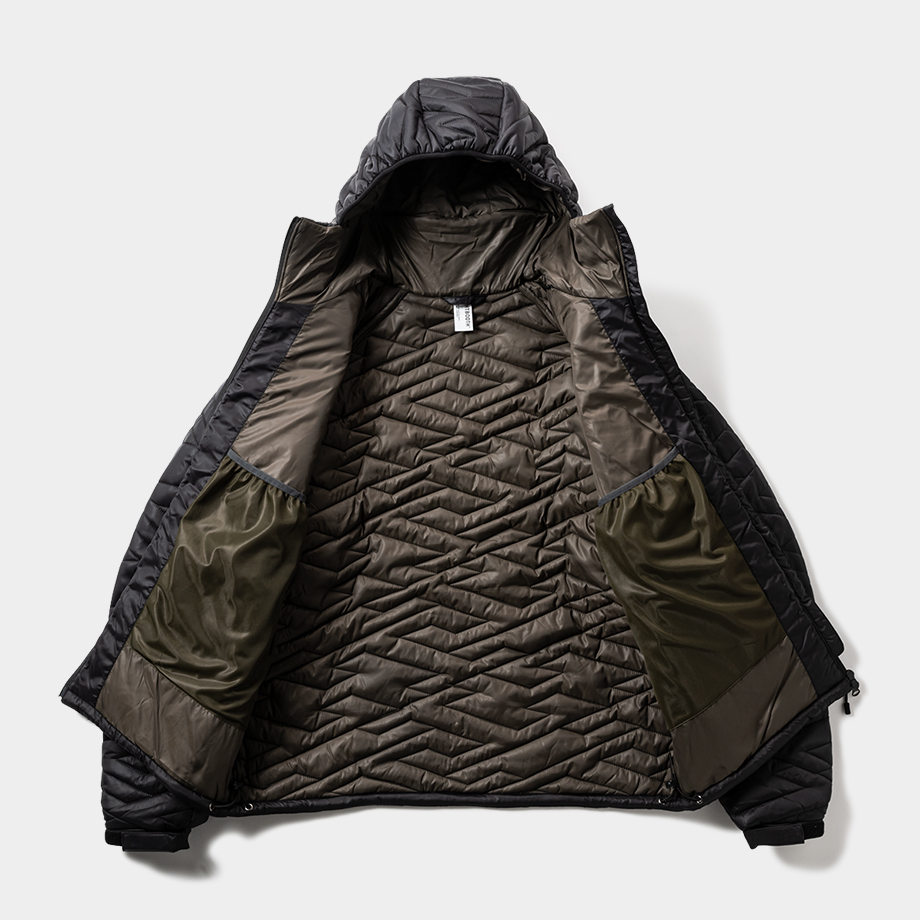 薄手でサラリとした表面感のミニリップストップ生地を使用し、中綿には優れた断熱性を持つ機能素材シンサレートを採用。