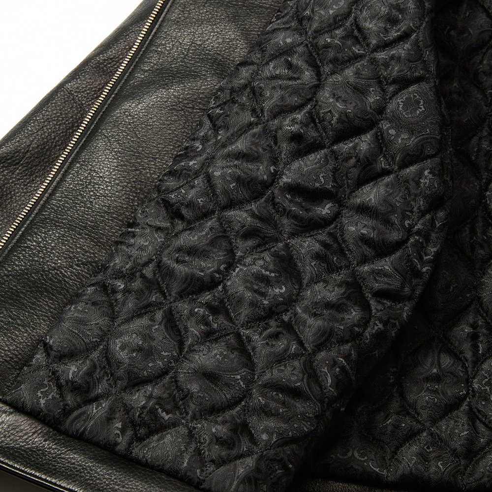 裏地はオリジナルペイズリー柄の中綿キルト、襟裏、袖裏、引き手に蛇革 (パイソンレザー)を使用。