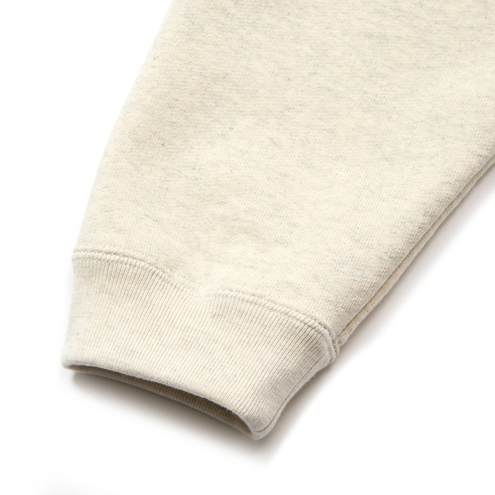 表糸に米綿の14/-空紡糸、裏糸を3トビにし、表の縦目を立たせることでアメリカンヴィンテージを再現したヘビー裏毛を採用。
