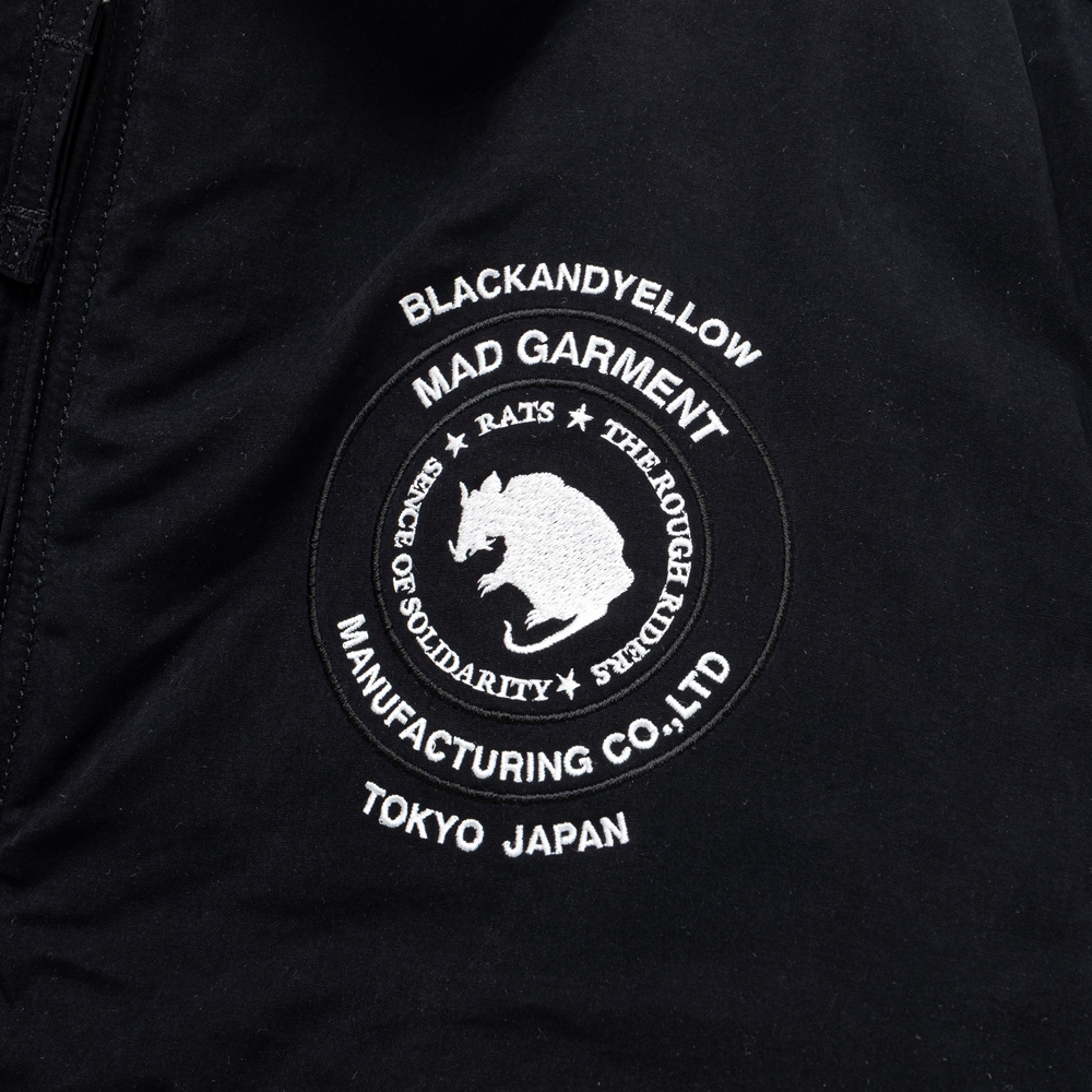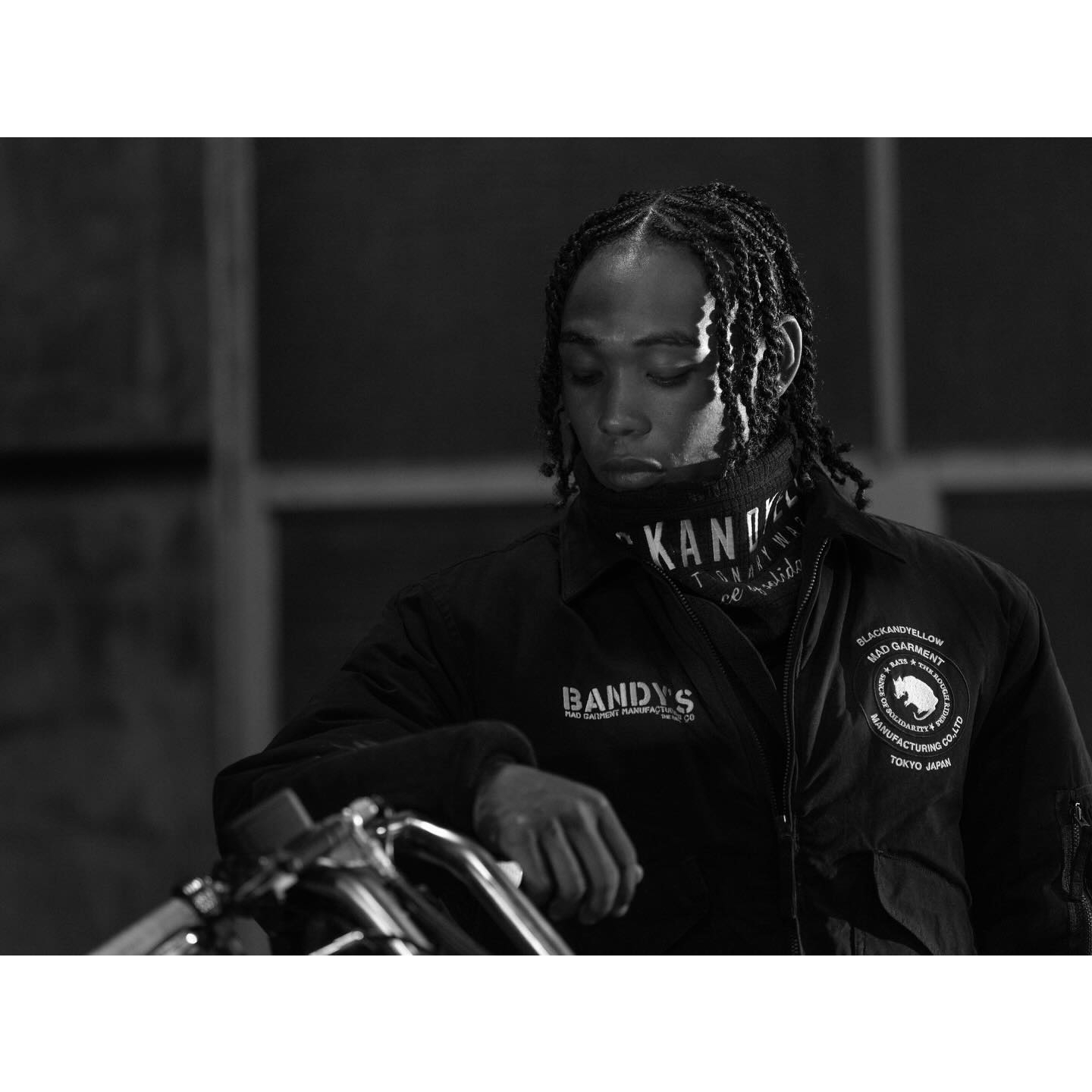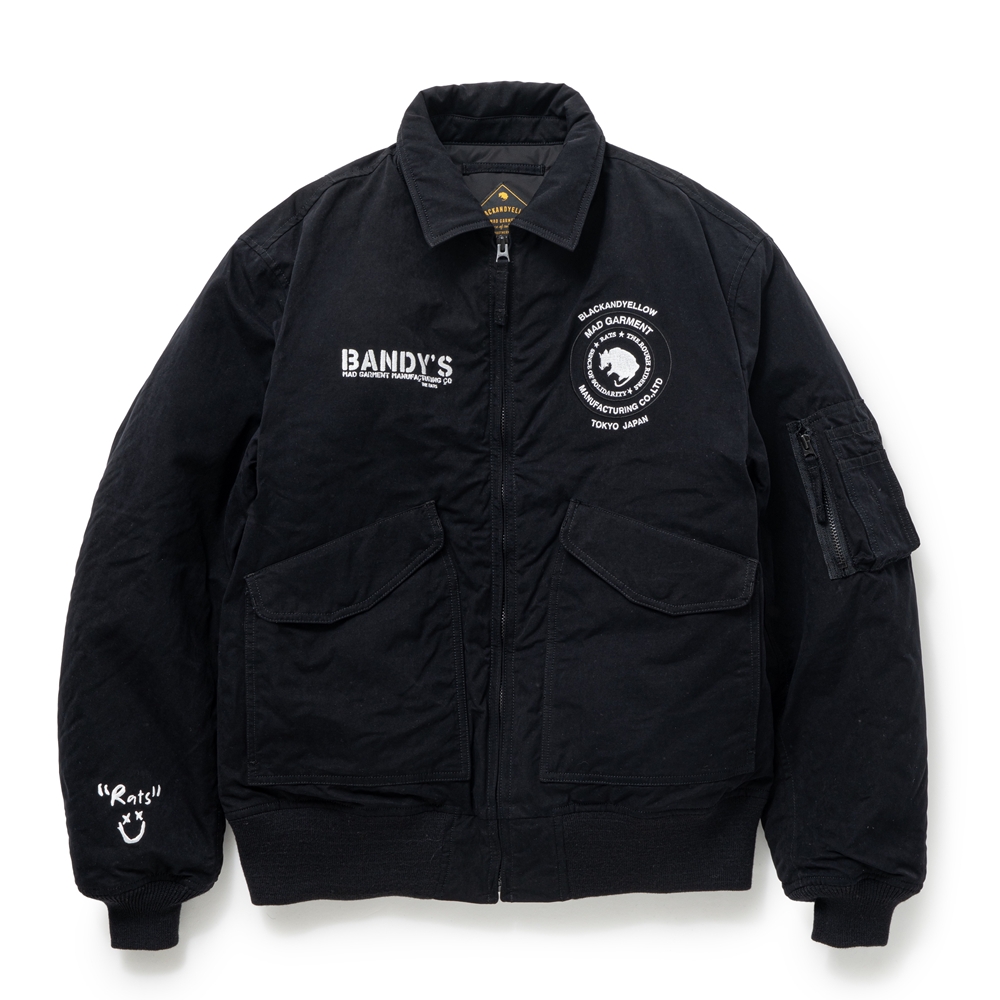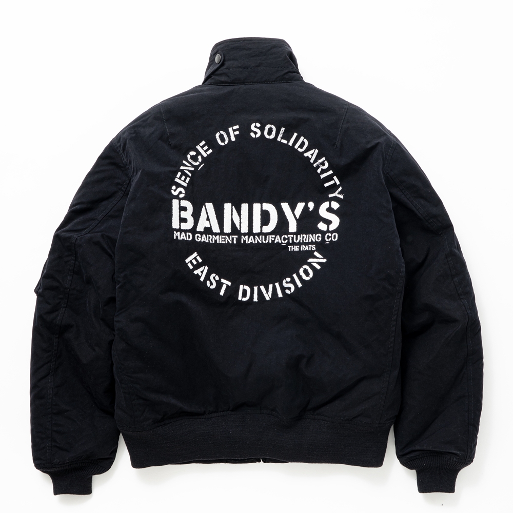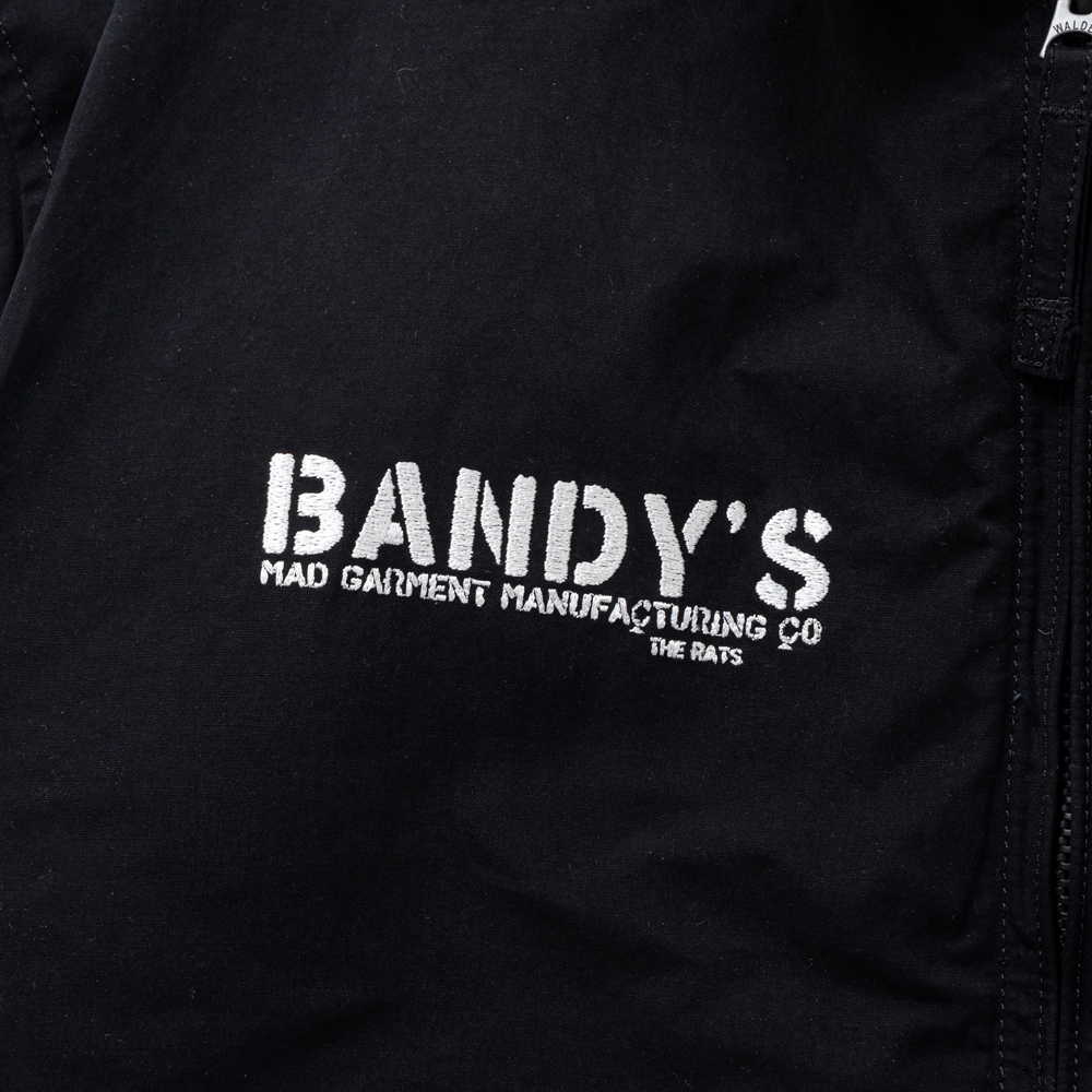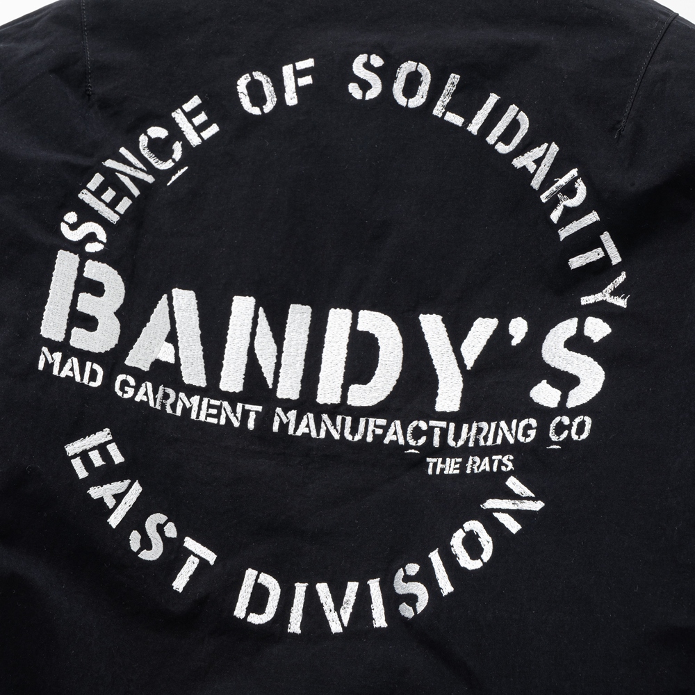 左胸にサークル型ワッペンを叩きつけ、右胸にBANDY’Sレター、背面にサークル型アートワークを刺繍で表現するなど、RATSが掲げるメッセージやアイコンを随所に散りばめたデザイン。