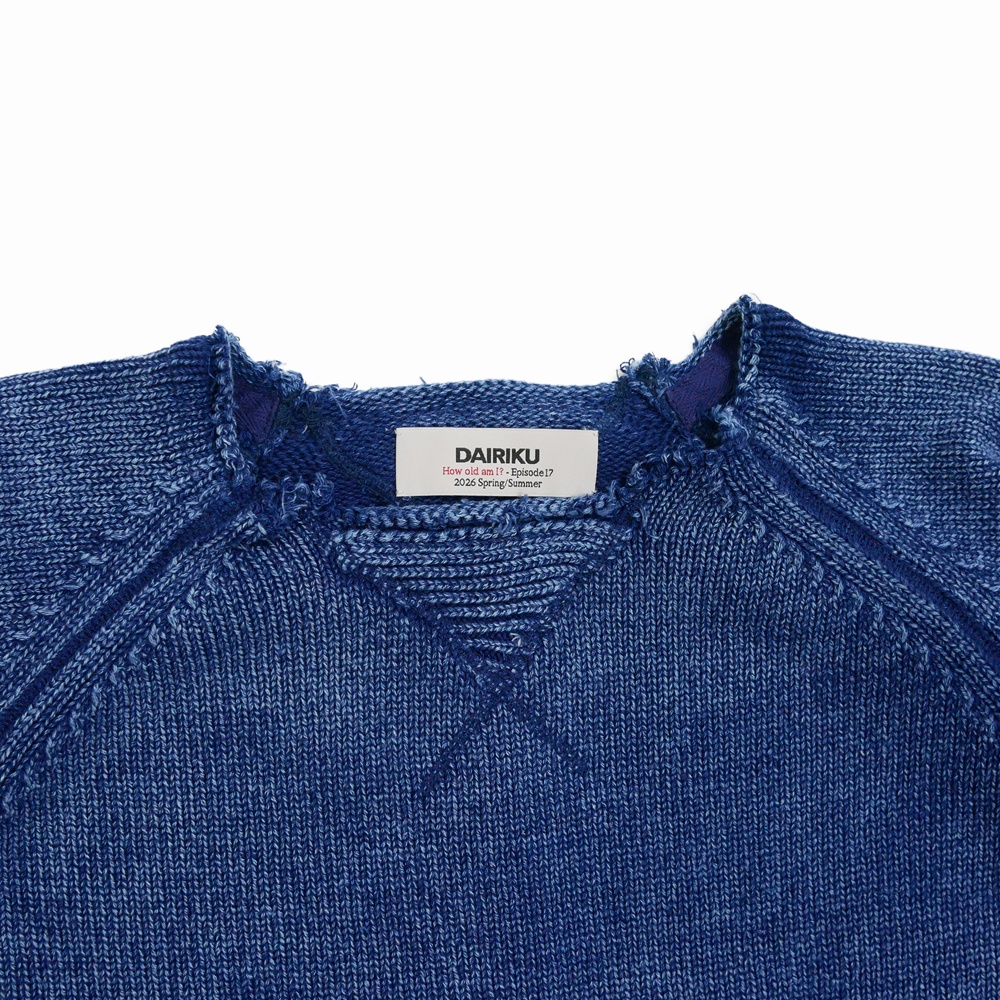 DAIRIKU/Vintage Washed Pullover Knit Sweater(Indigo)[ヴィンテージウォッシュドニットセーター-26春夏]