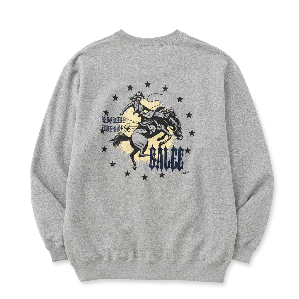 CALEE/IRON HORSE CREW NECK SW <BARTHDAY WORKS DESIGN>(MIX GRAY)[クルーネックスウェット-26春夏]