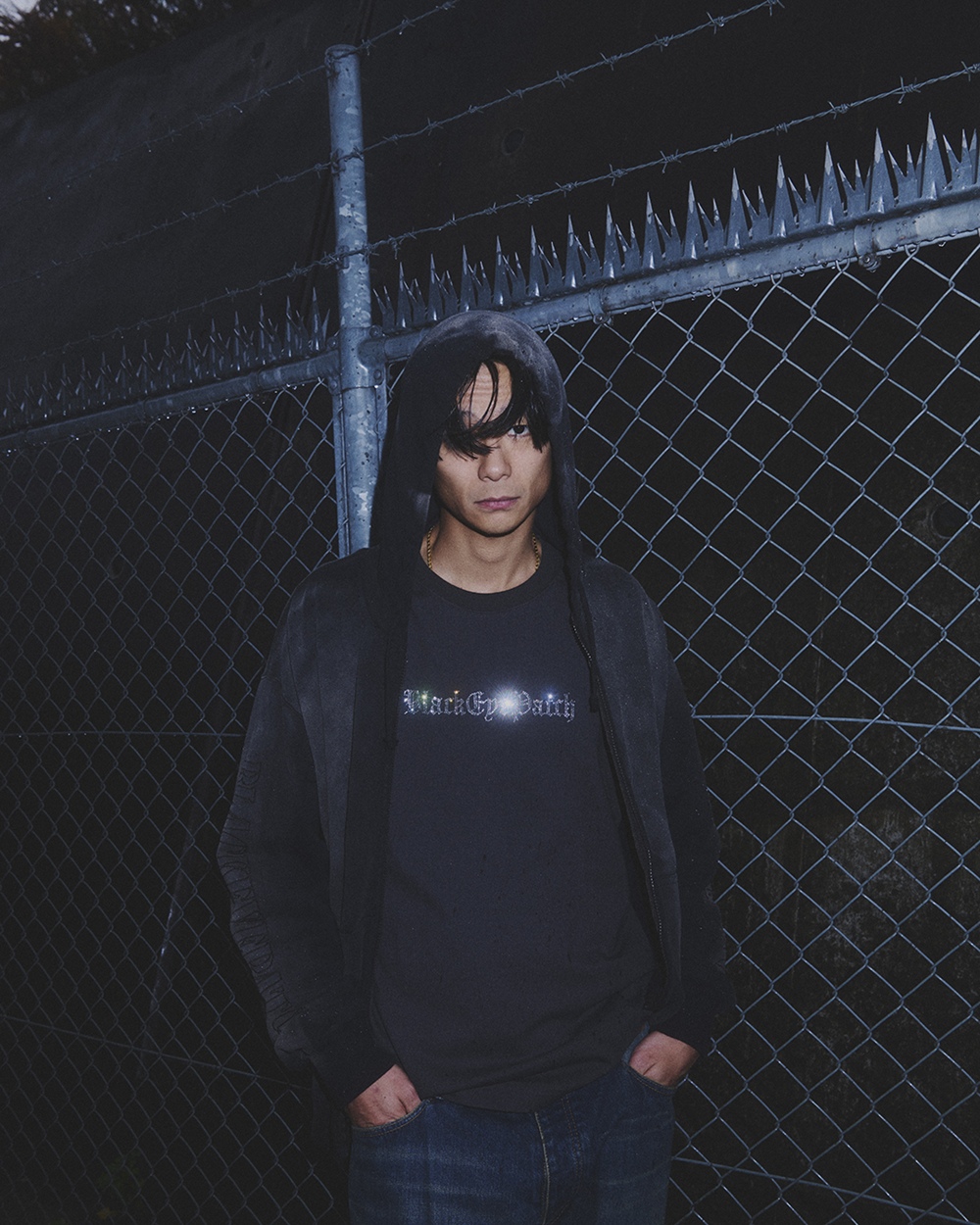 O.E ロゴをラインストーンで表現したロングスリーブ T シャツ。
