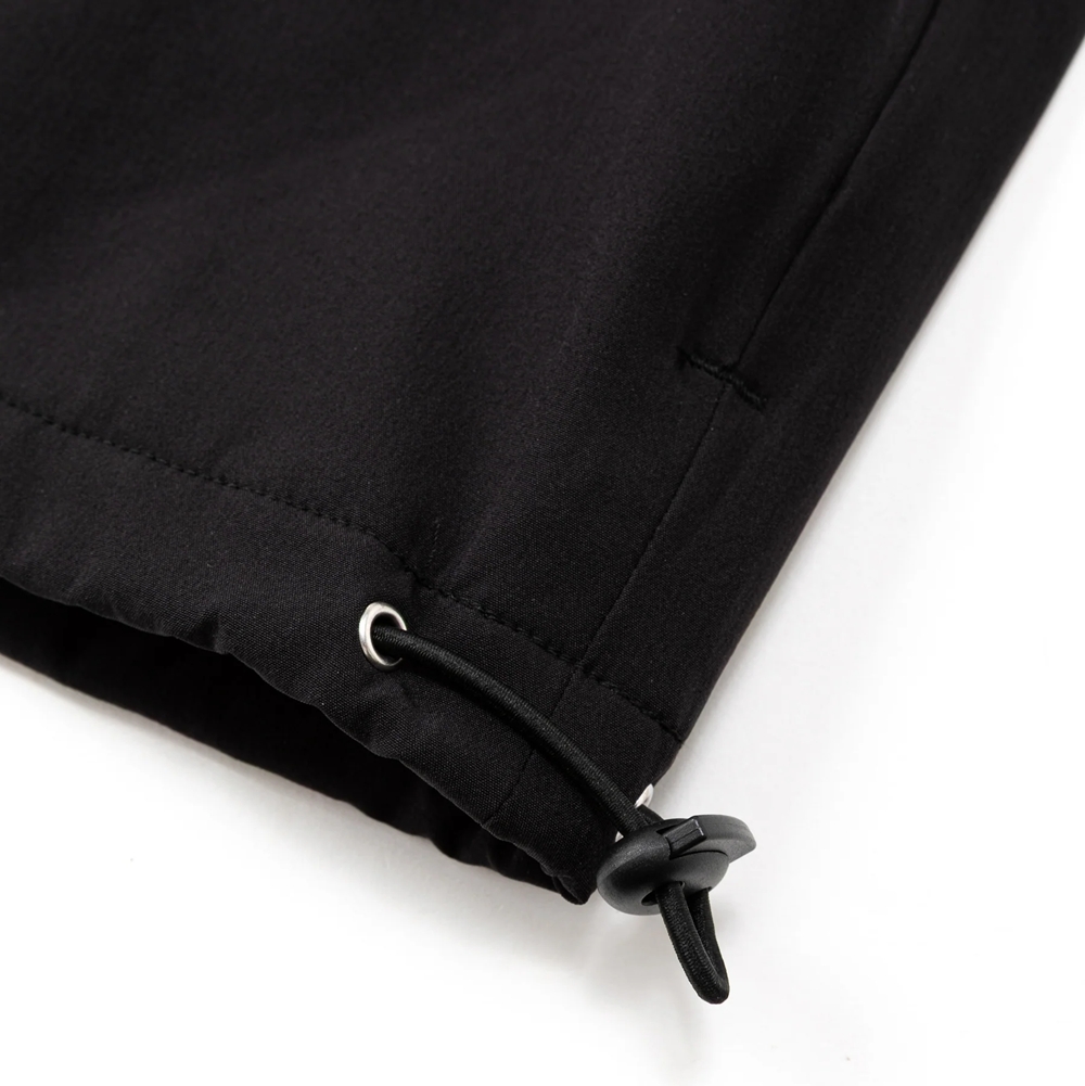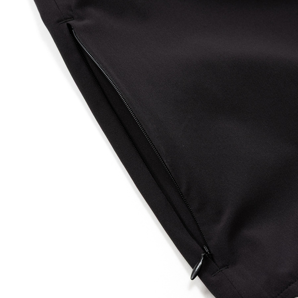 両サイドにジッパー付きポケット、裾部分にはドローコードを装備。