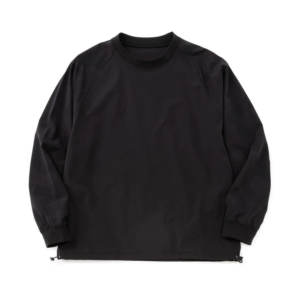 伸縮性のあるポリウレタン混のナイロンボディーを使用し、両ブランドのロゴをプリントで落としたデザインのL/Sピステ。