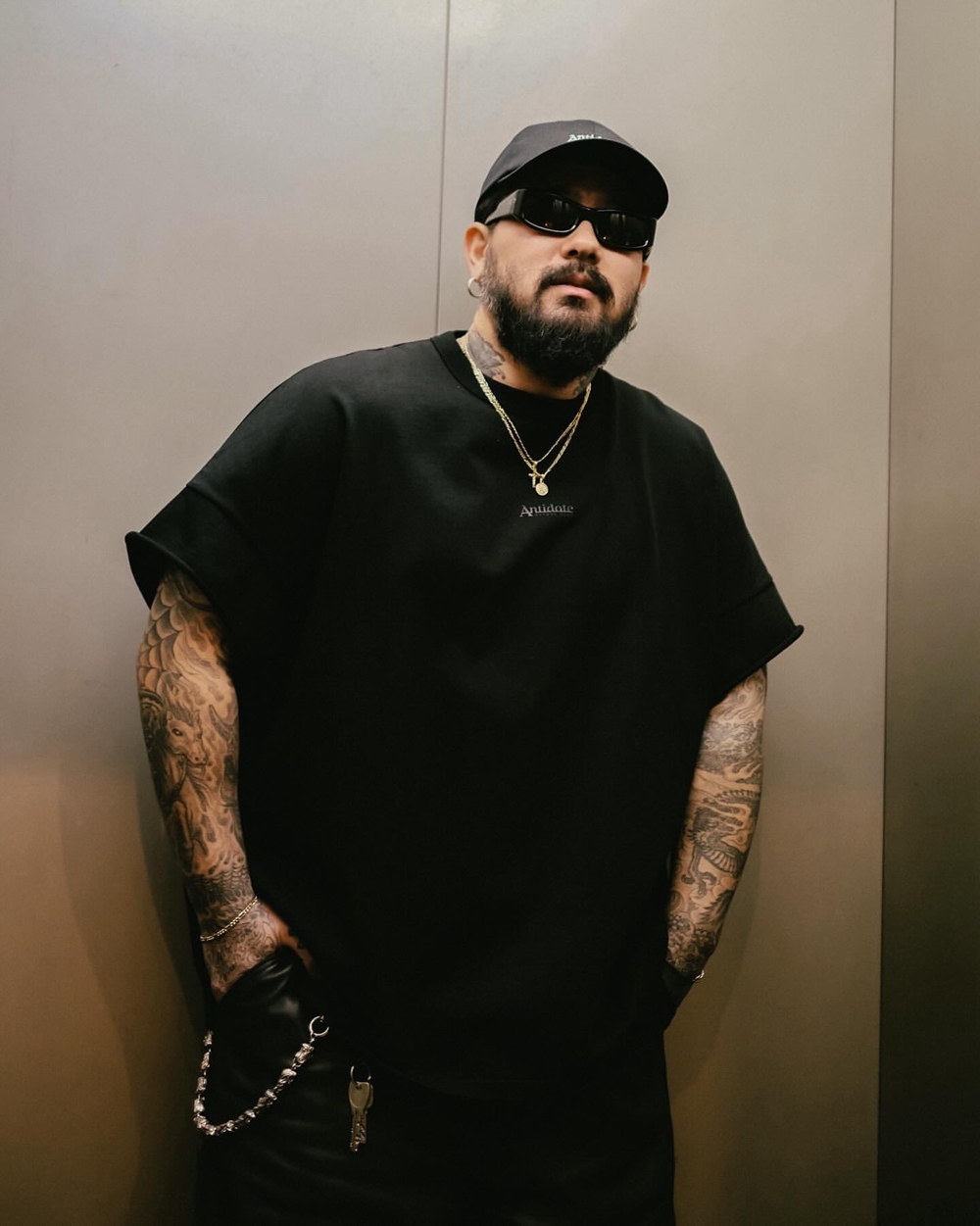 ANTIDOTE BUYERS CLUB/ASIC Heavy Weight Oversized Cutoff Tee(Pure Black)
