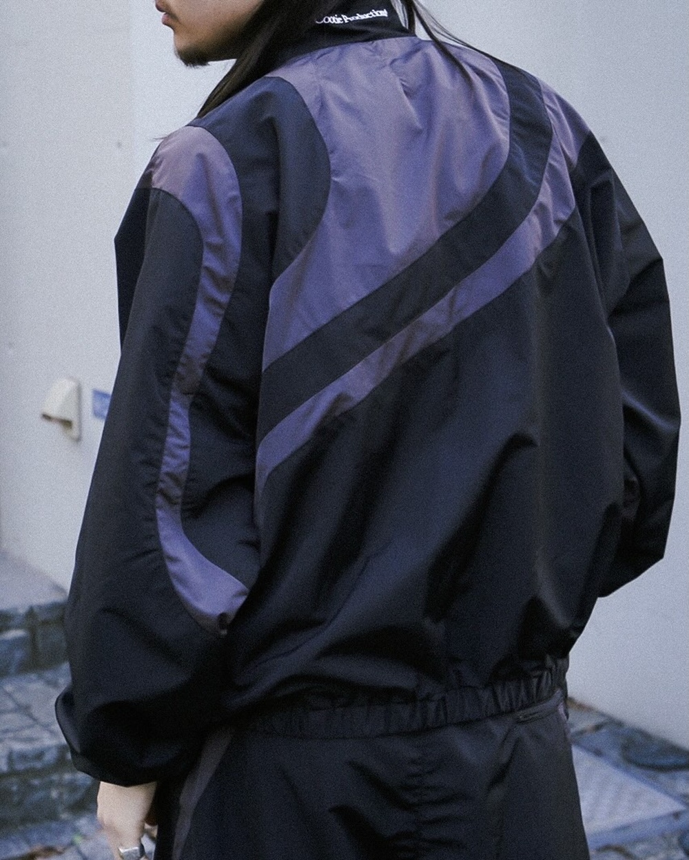 ナチュラルなシボ感を持つナイロン生地を切り返し配色で使用したNylon Paneling Track Jacket。