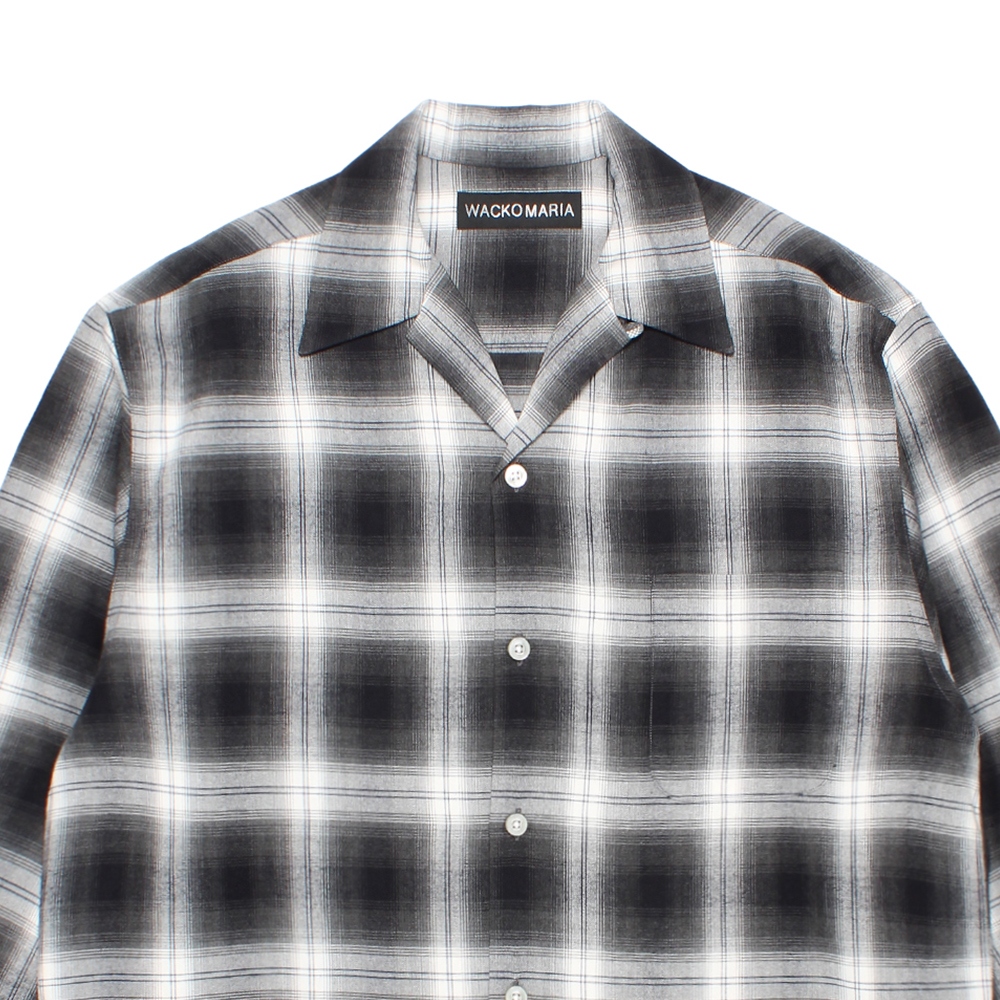 WACKO MARIA/OMBRE CHECK OPEN COLLAR SHIRT(GRAY)[オンブレチェックオープンカラーシャツ-26春夏]