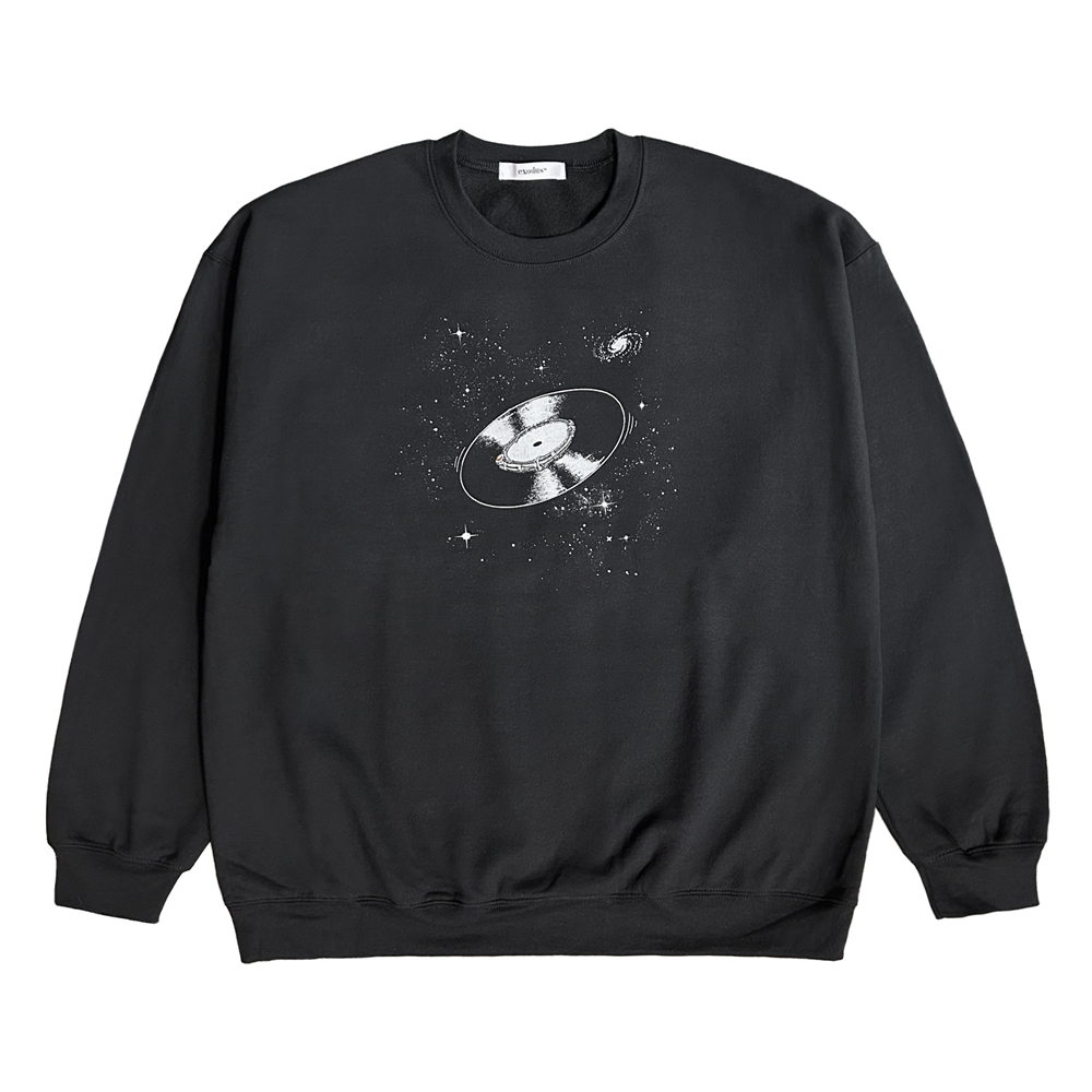 exodus brand/SPACE VINYL RECORD SWEAT CREW NECK(BLACK)[クルーネックスウェット-26春夏]