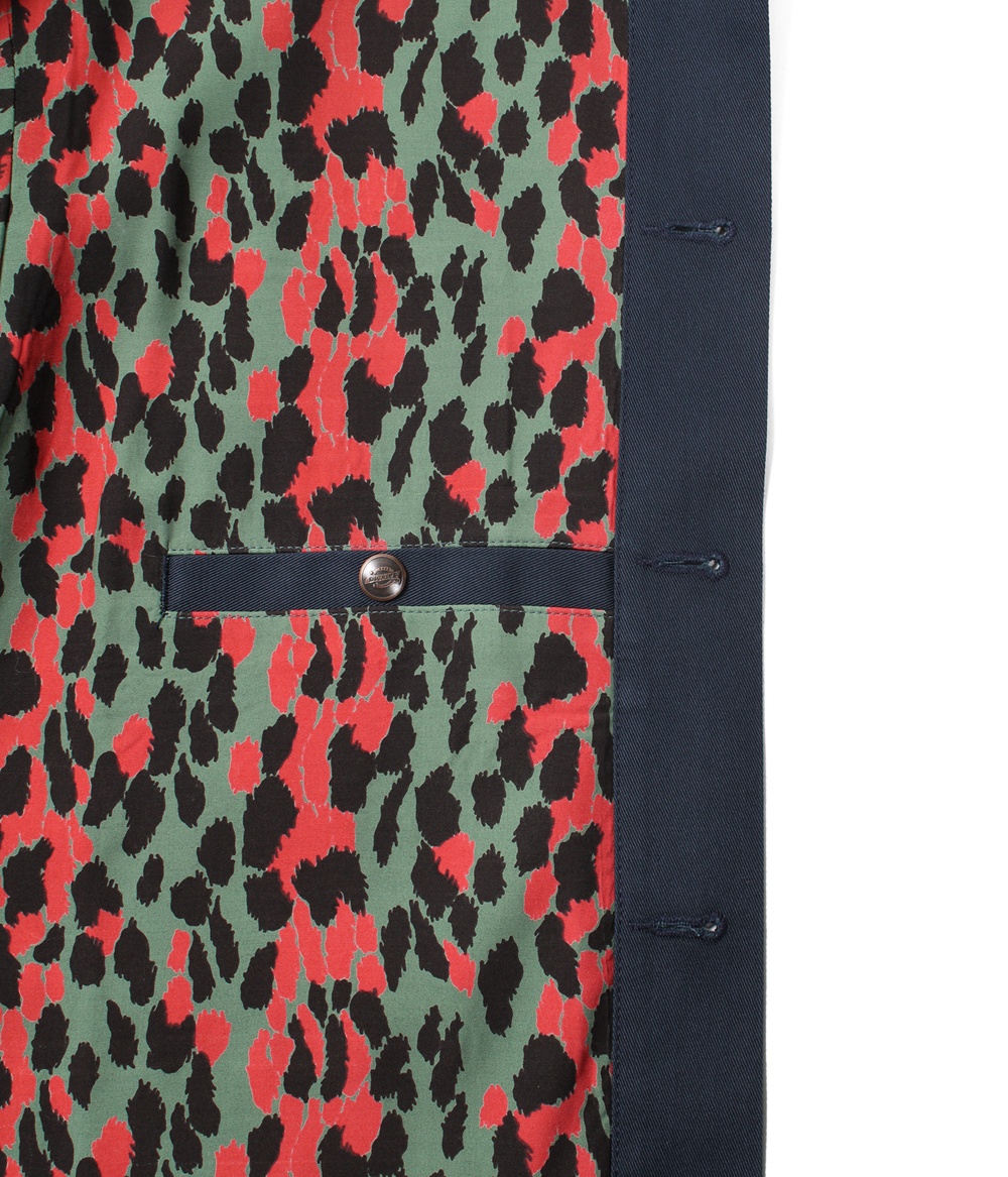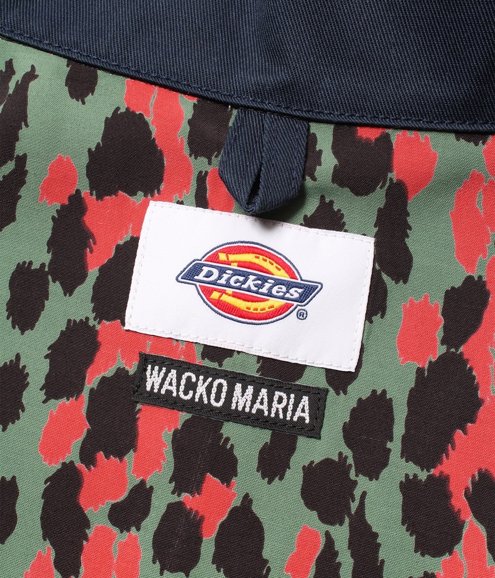 表地にはDICKIES定番のポリエステル/コットンのT/C生地を使用し、裏地はWACKO MARIAオリジナルのレオパード柄レーヨン生地を使用しています。