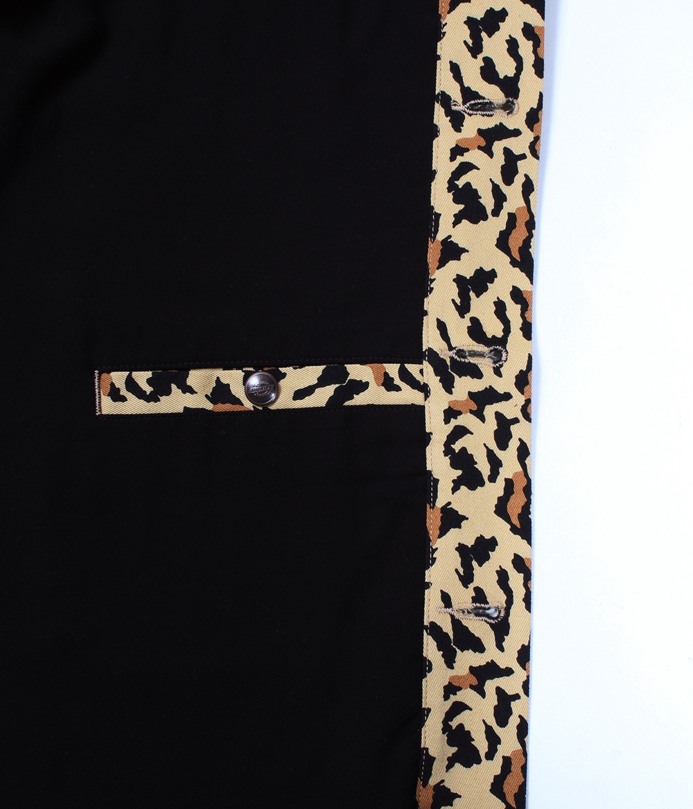 表地にはWACKO MARIAオリジナルのレオパード柄コットン生地を使用し、裏地は袖通しの良いリヨセル生地を使用しています。