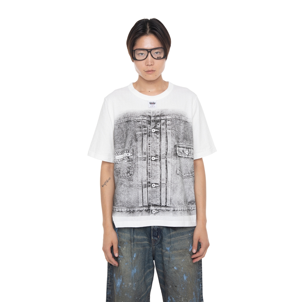 フロントにデニムJKTのプリントが施されている。