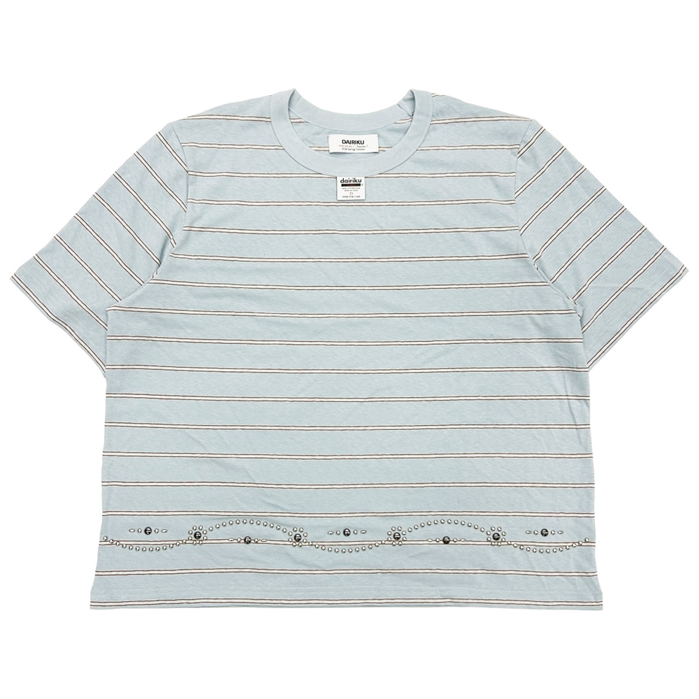 DAIRIKU/Waist Studs Border H-S Tee(Aqua)[スタッズボーダーT-26春夏]