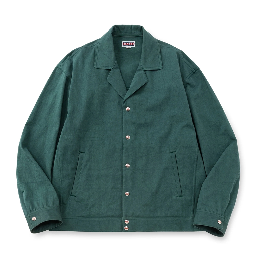 CALEE/SLUB SATIN OPEN COLLAR JACKET(GREEN)[スラブサテンオープンカラーJKT-26春夏]