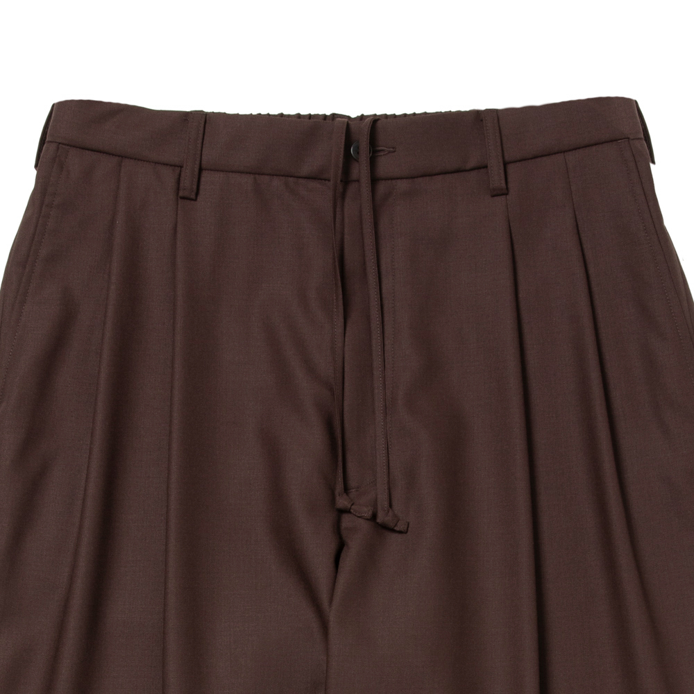 特殊な混紡により毛羽の少ない強い構造の糸で織り上げられたウォッシャブルT/Wツイルを使用したT/W Twill 2 Tuck Wide Easy Trousers。