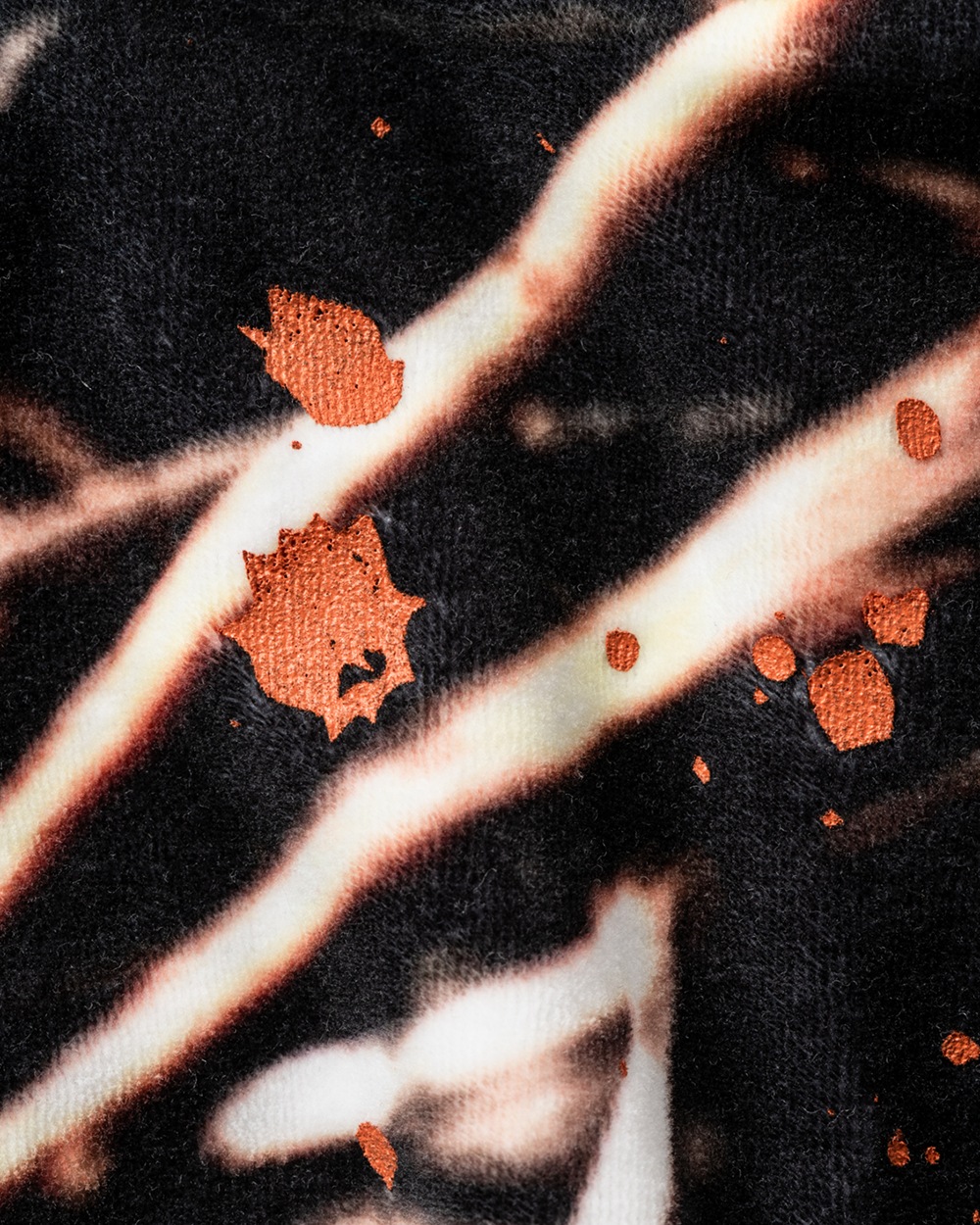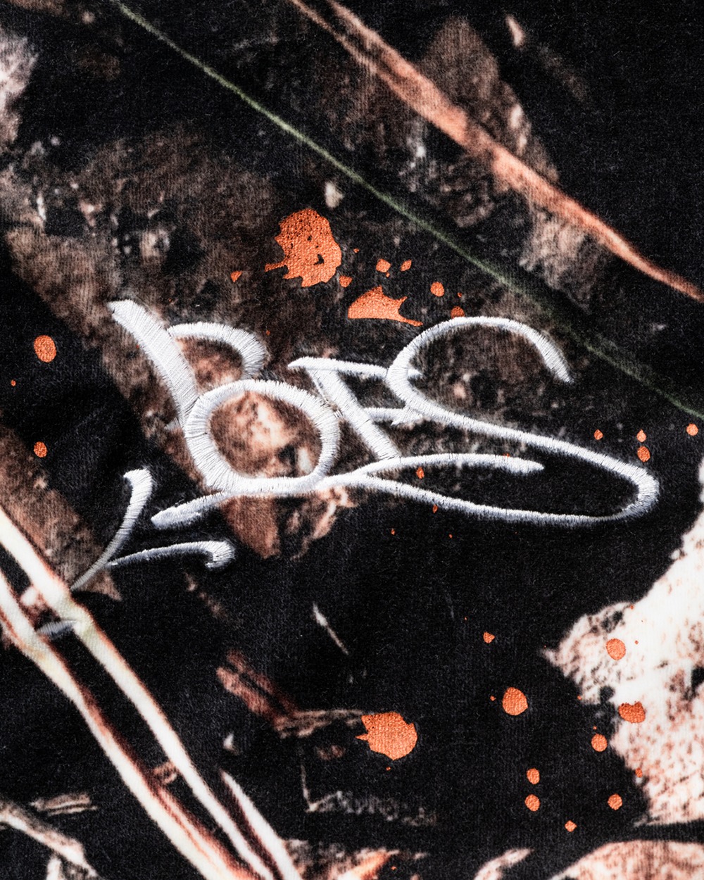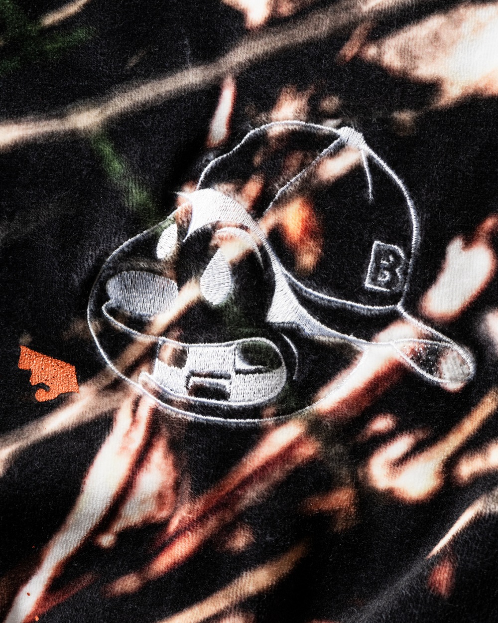 オリジナルCAMOデザインをベロア素材に落とし込んだフードジャケット。