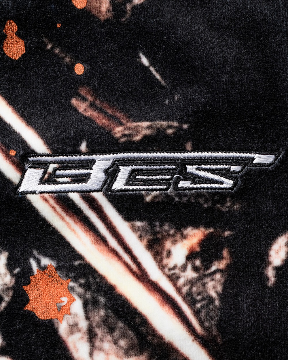 背面にはソロ名義での作品やSWANKY SWIPEでもお馴染みのロゴ、BESのタギングを刺繍。