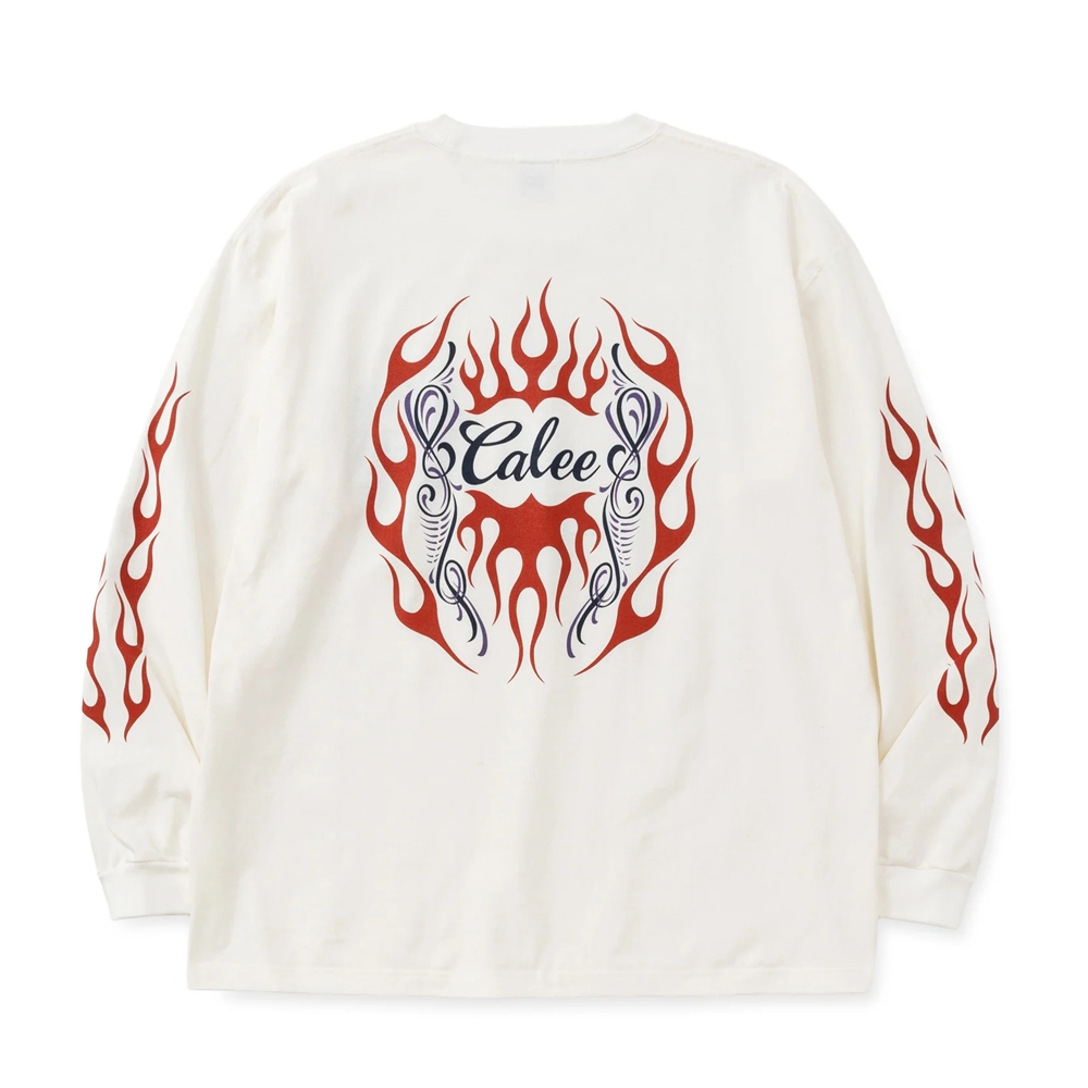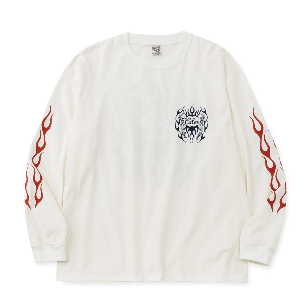 CALEE/VINTAGE TYPE FLAME LOGO PINSTRIPING L/ S TEE <NATURALLY PAINT DESIGN>(WHITE)[プリント長袖T-26春夏]