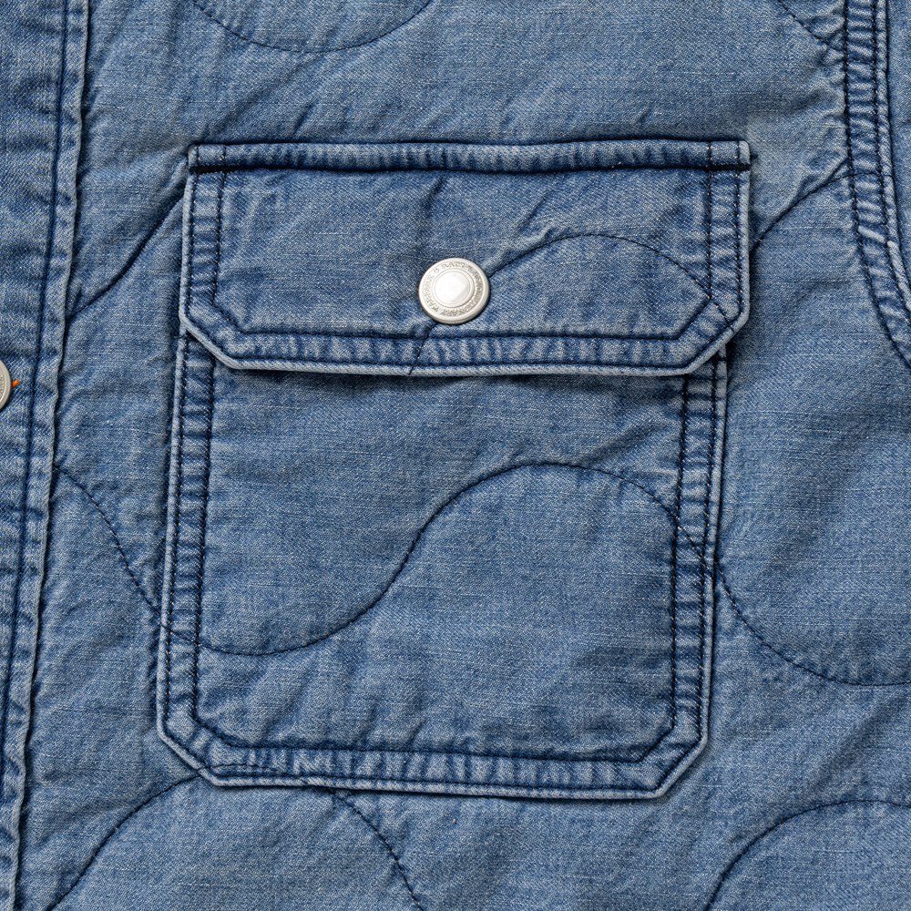 6.6ozのライトなデニム素材を使用したデニムキルティングシャツJKT。