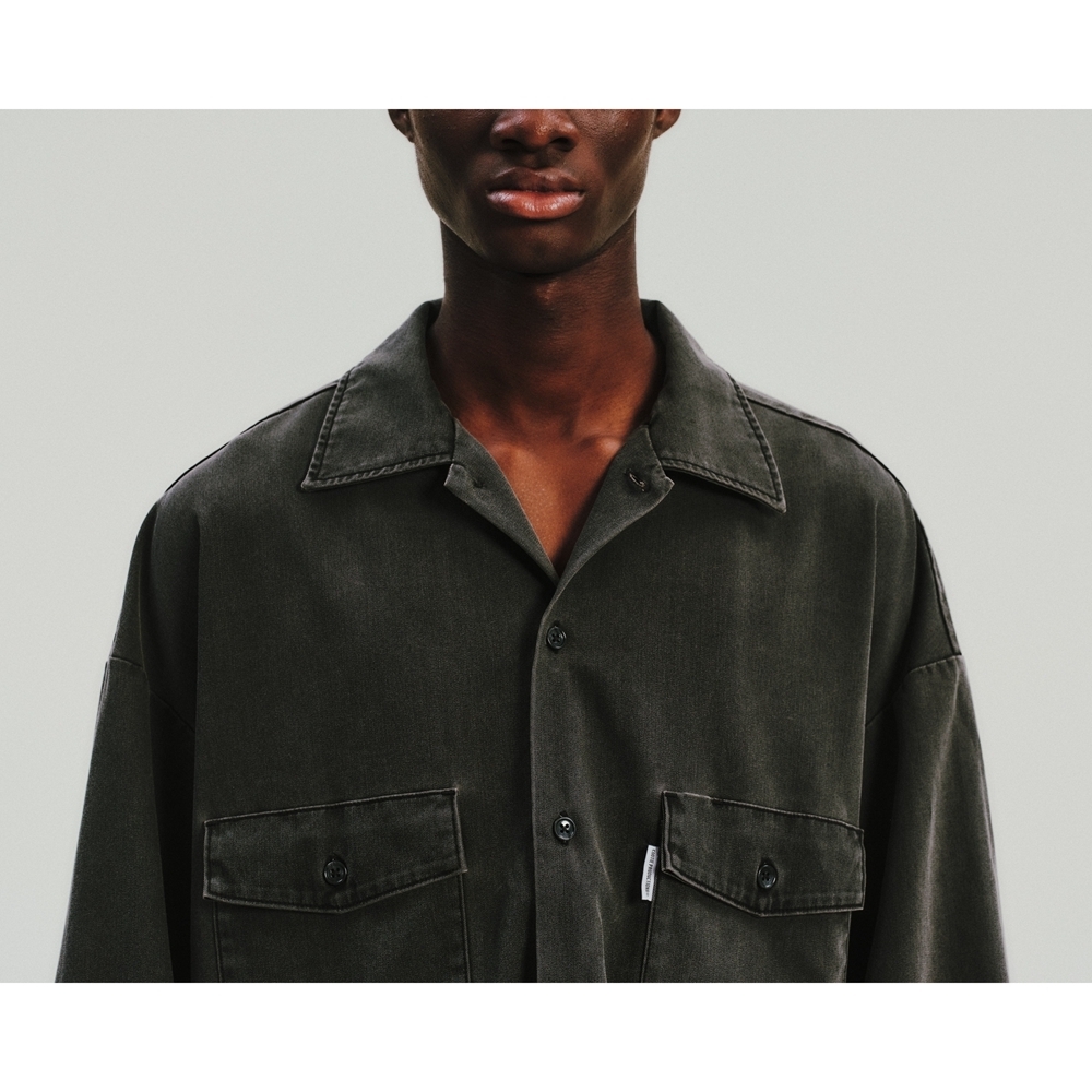 T/Rツイルに顔料コーティングを施したオリジナルファブリックを使用したPigment Coating T/R Twill L/S Work Shirt。