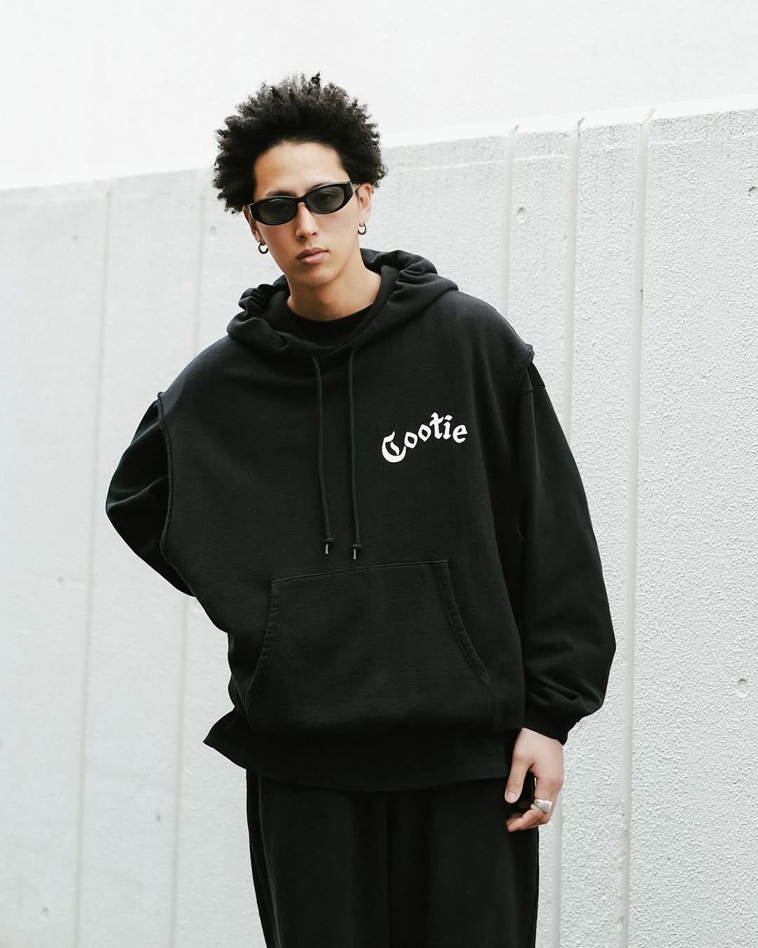 COOTIE PRODUCTIONS/Venice Sweat Cut-Off Sleeve Hoodie(Black)[スウェットカットオフフーディー-26春夏]