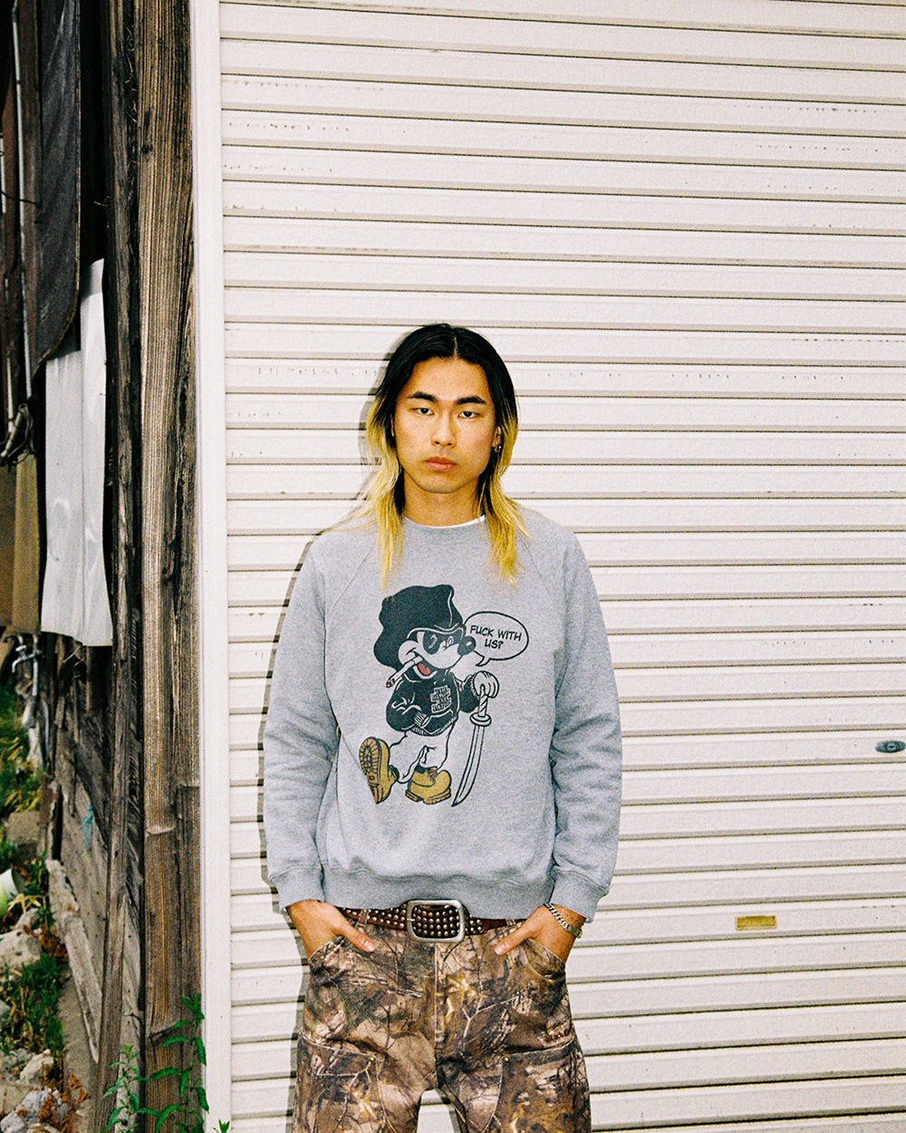 ヴィンテージ市場で人気のある某キャラクターのラグランスウェットをサンプリング。