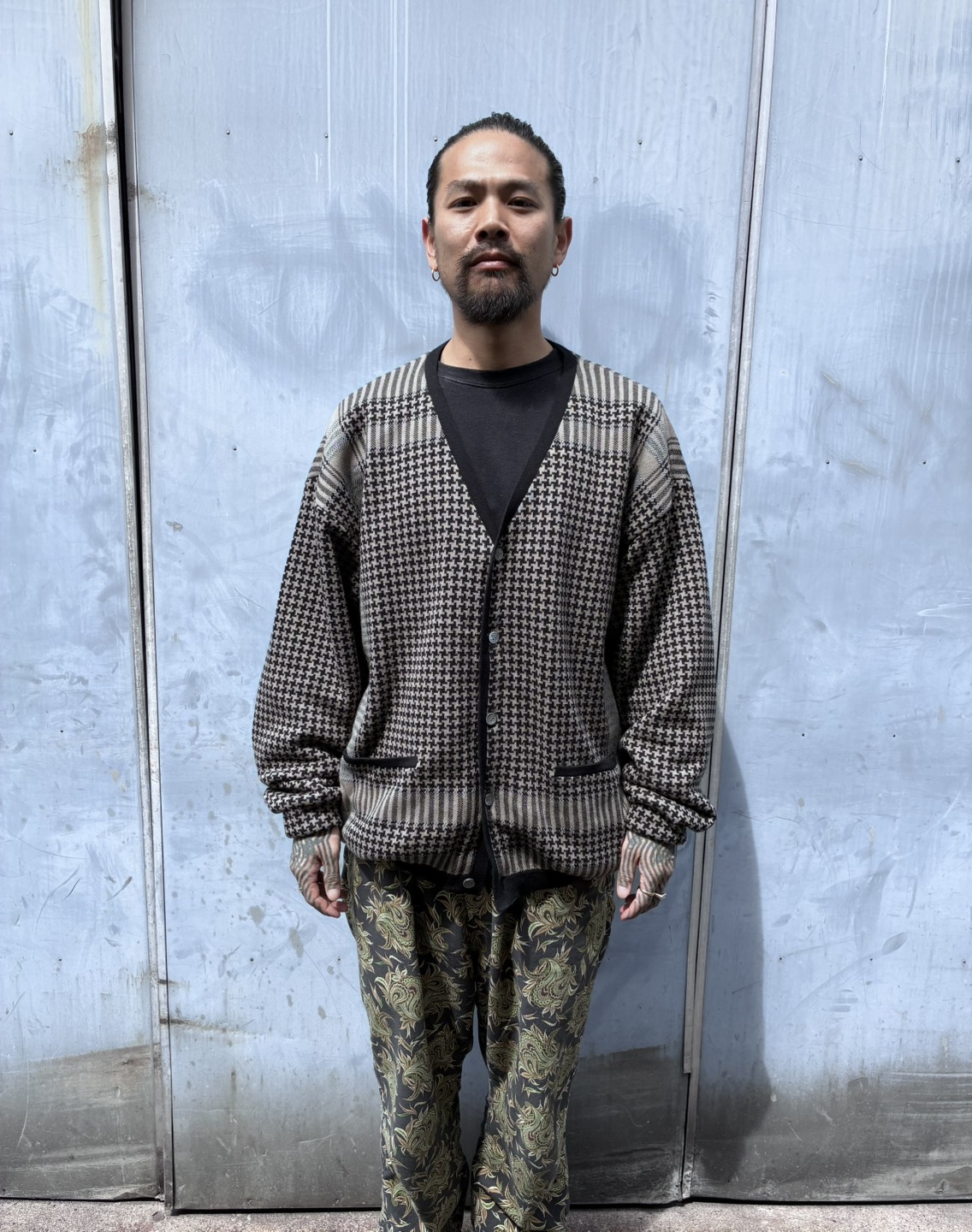 exodus brand/SHEMAGH JACQUARD KNIT CARDIGAN(GREY/BEIGE)[シュマグジャガードニットカーディガン-26春夏]